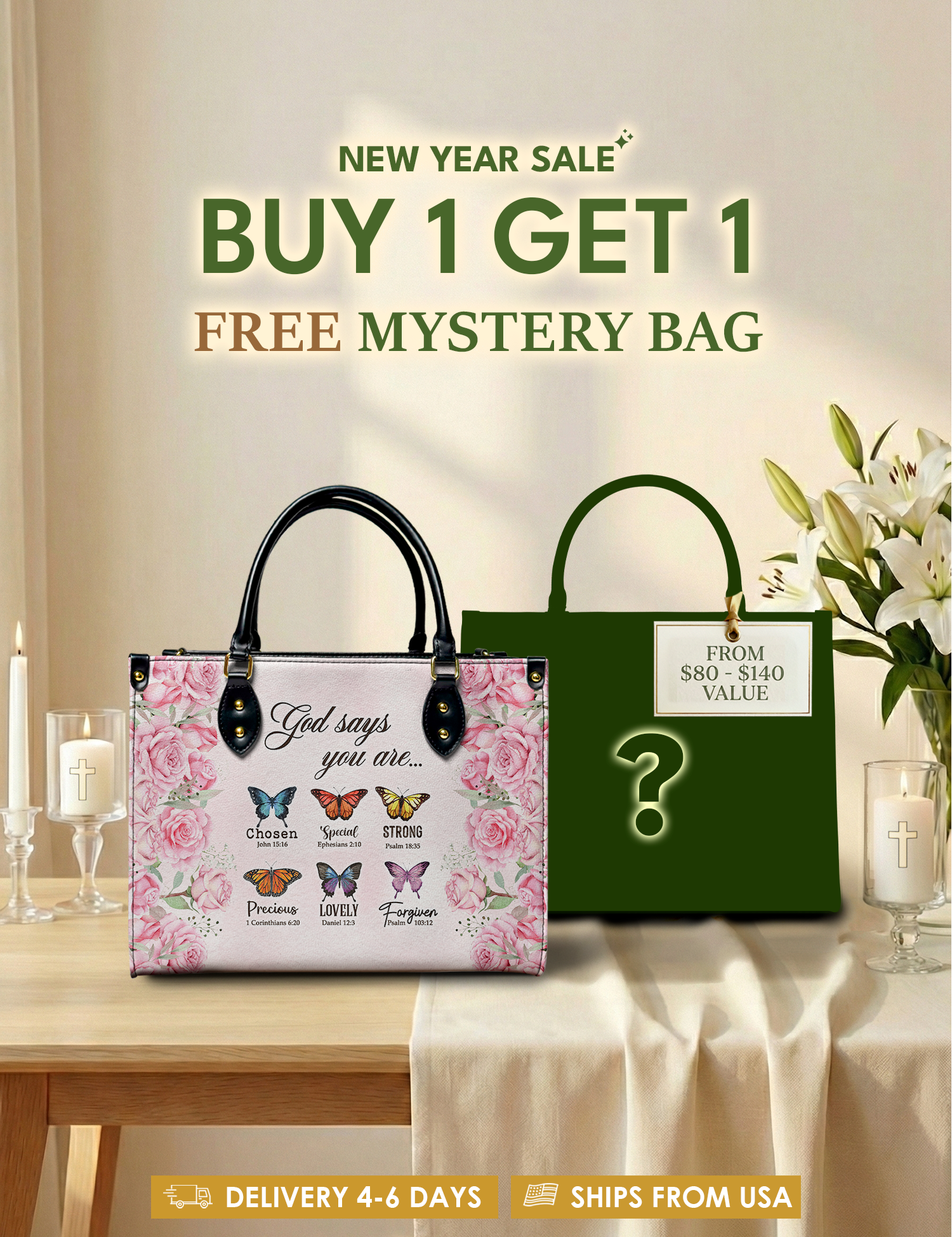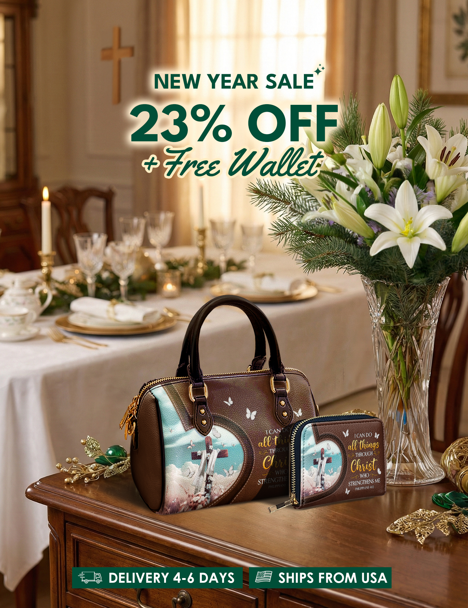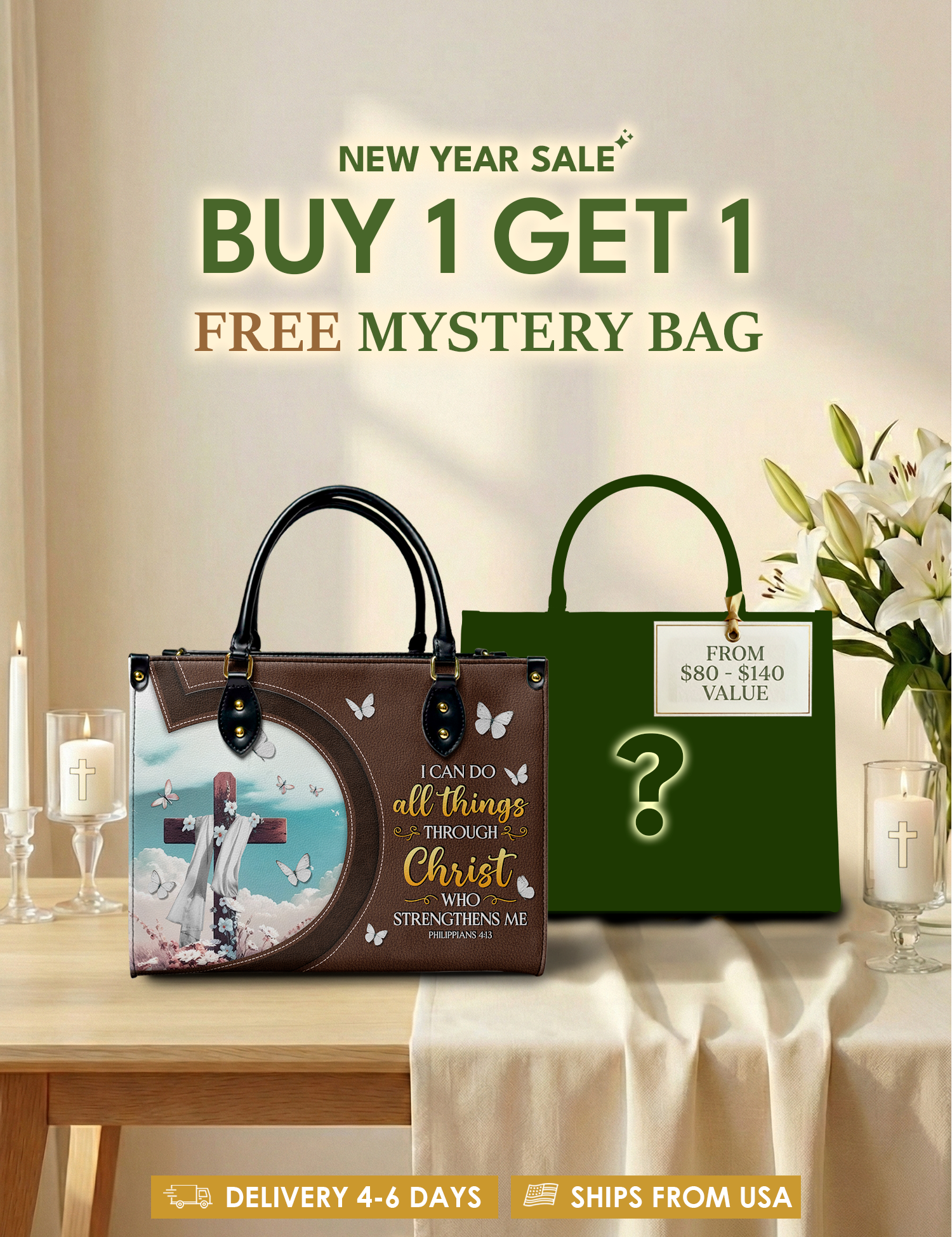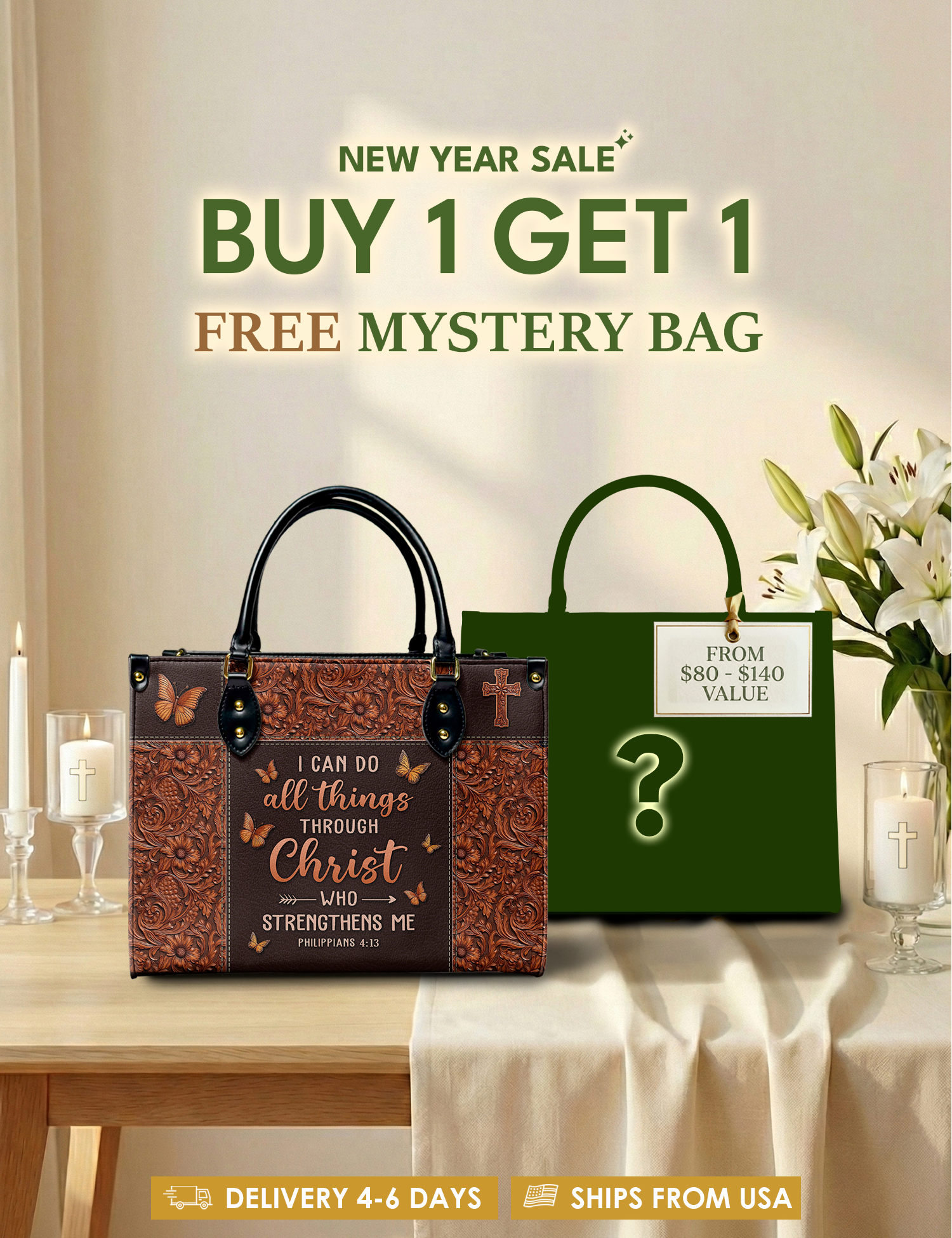 Bold, uplifting, and deeply meaningful. Designed for women of God, these handbags celebrate faith, courage, and the promises of God that lead us forward.