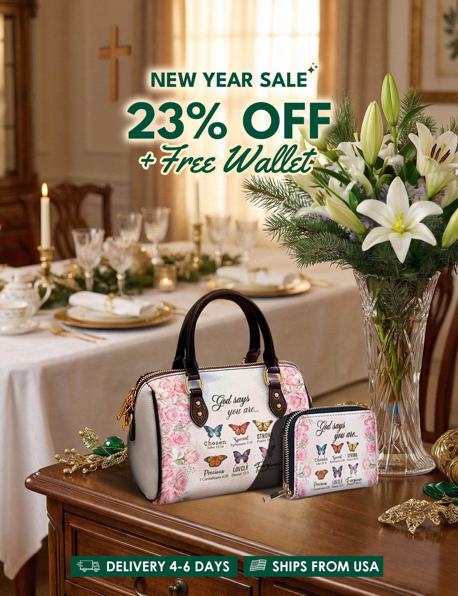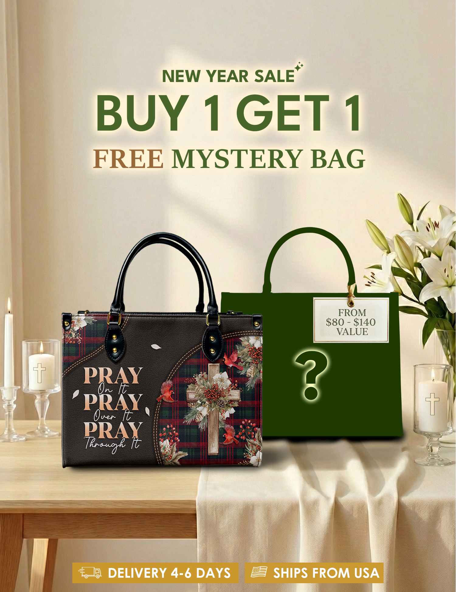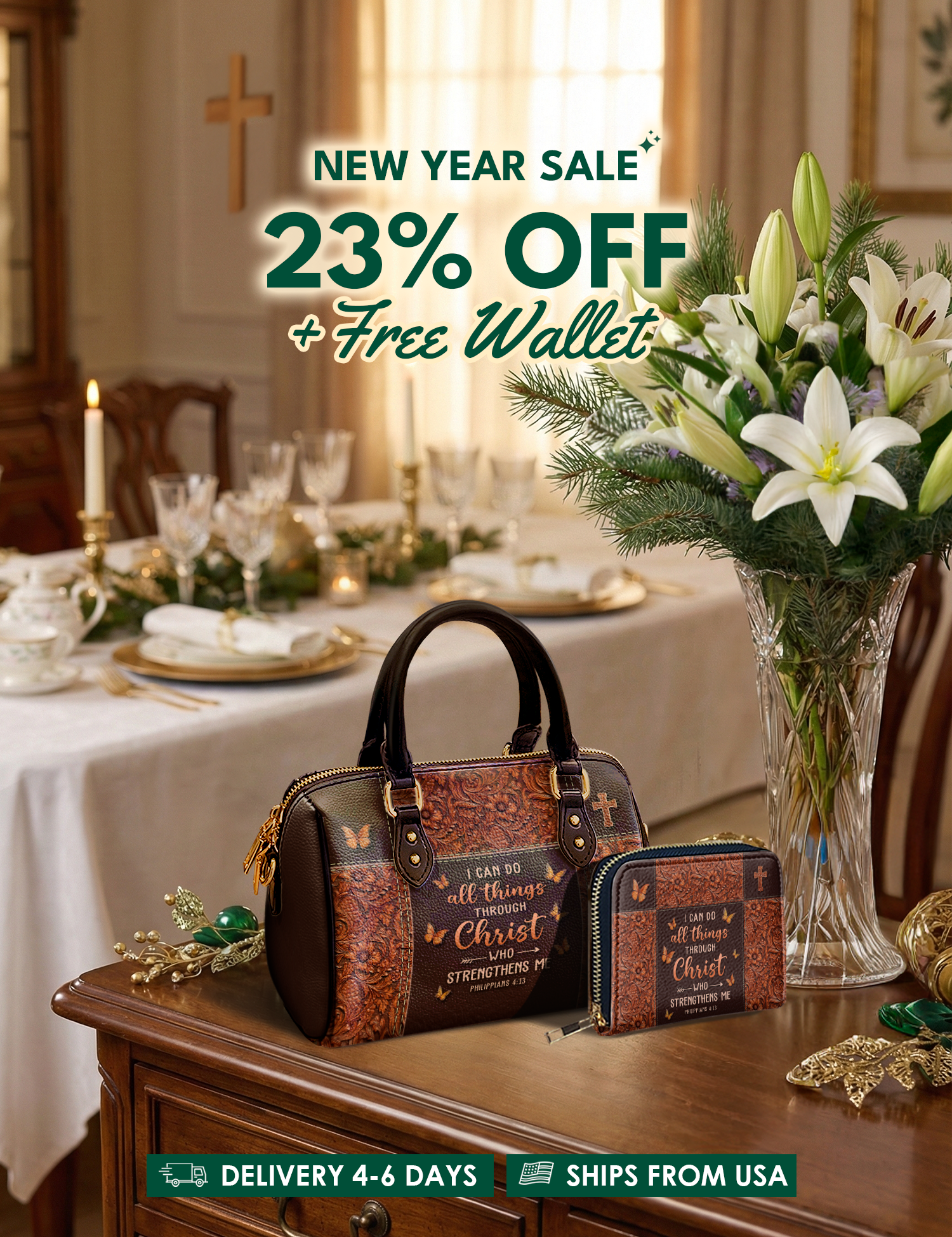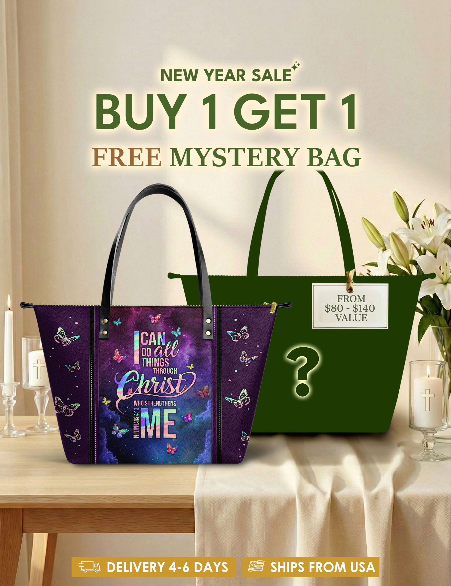 Bold, uplifting, and deeply meaningful. Designed for women of God, these handbags celebrate faith, courage, and the promises of God that lead us forward.
