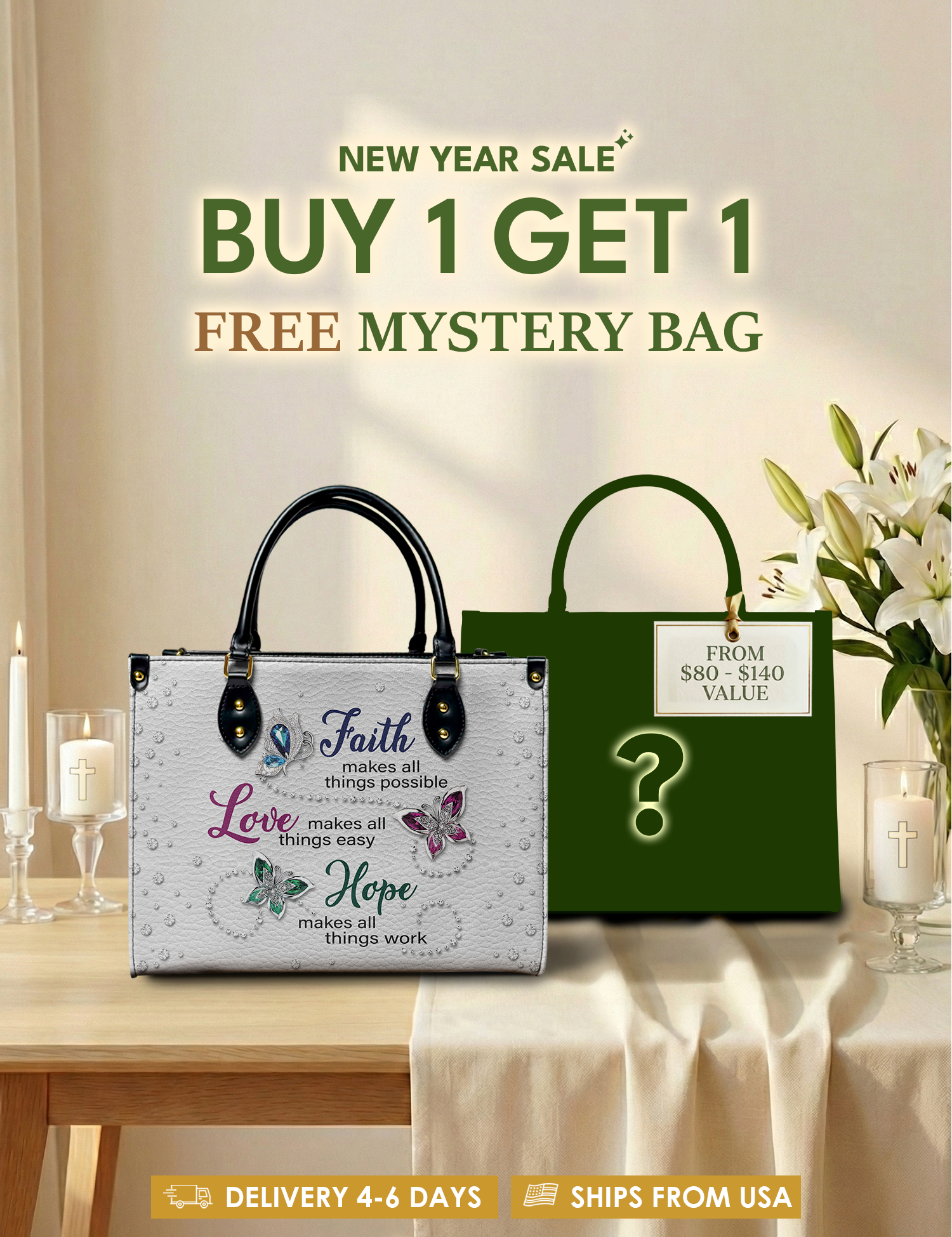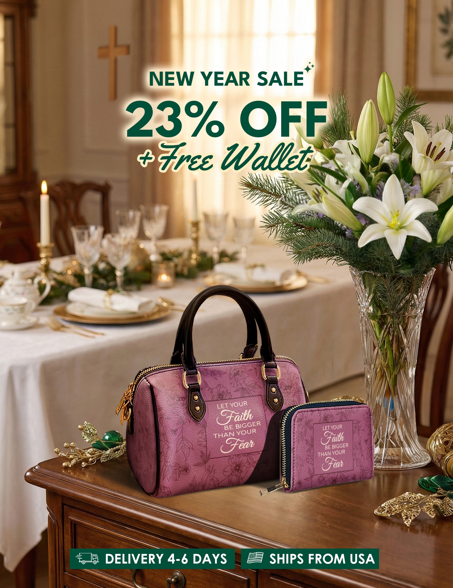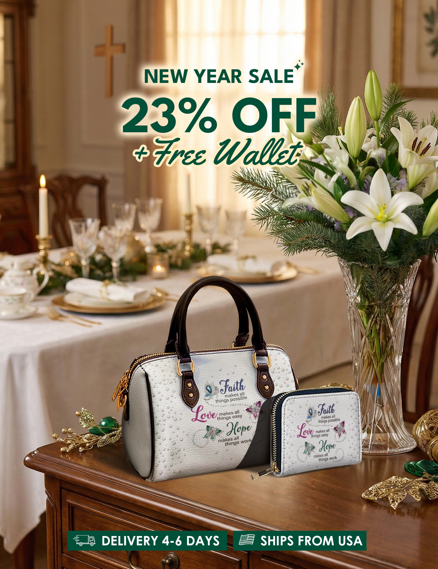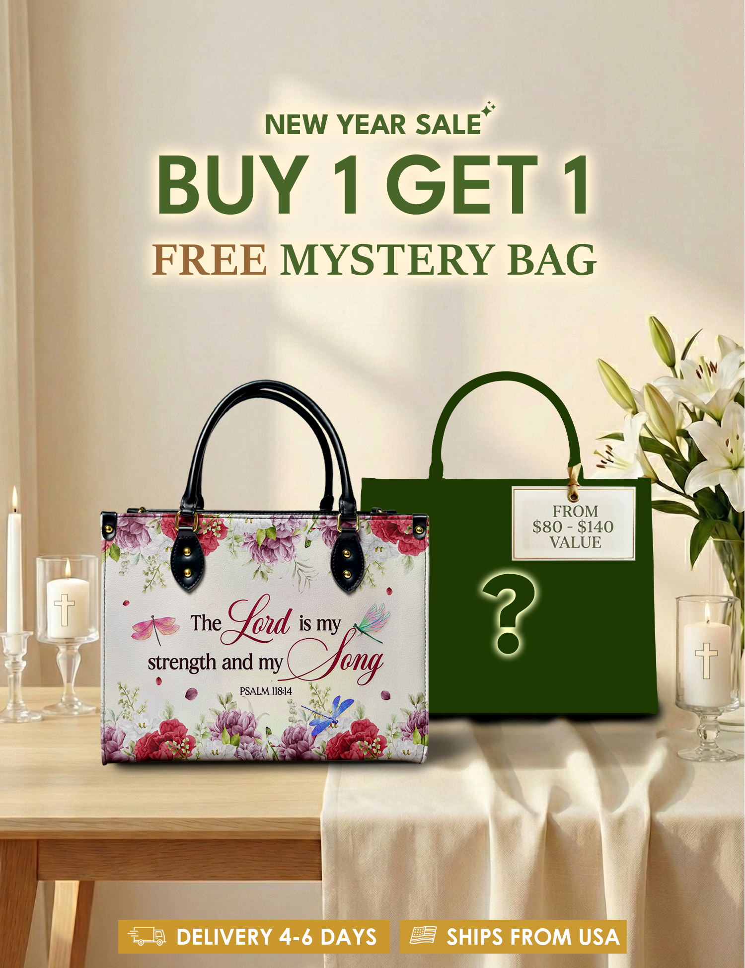 Bold, uplifting, and deeply meaningful. Designed for women of God, these handbags celebrate faith, courage, and the promises of God that lead us forward.