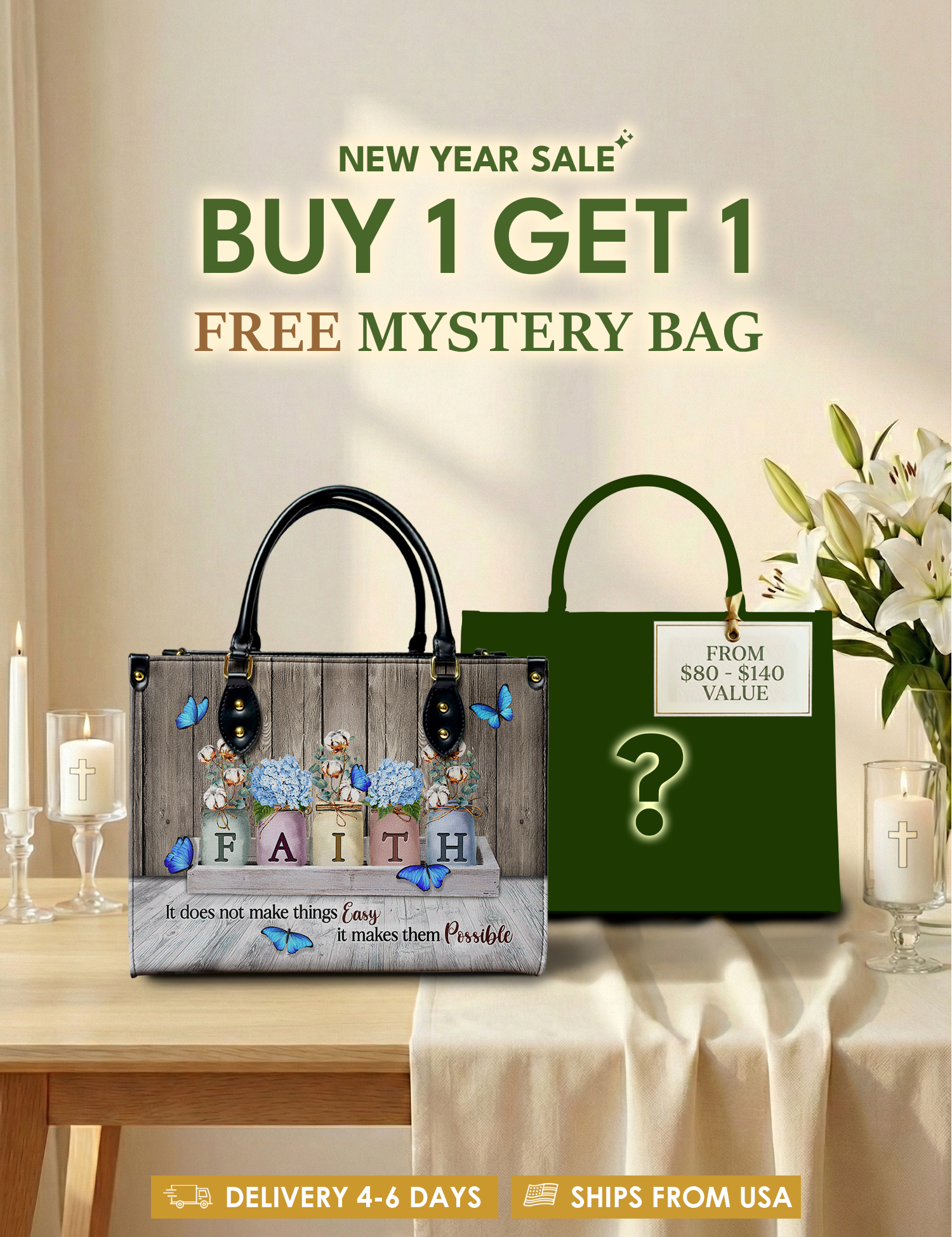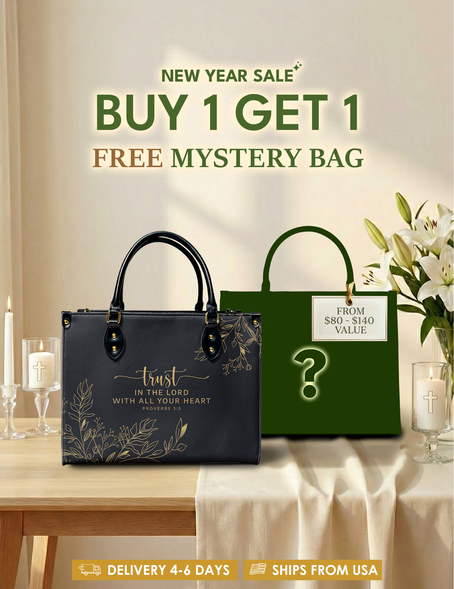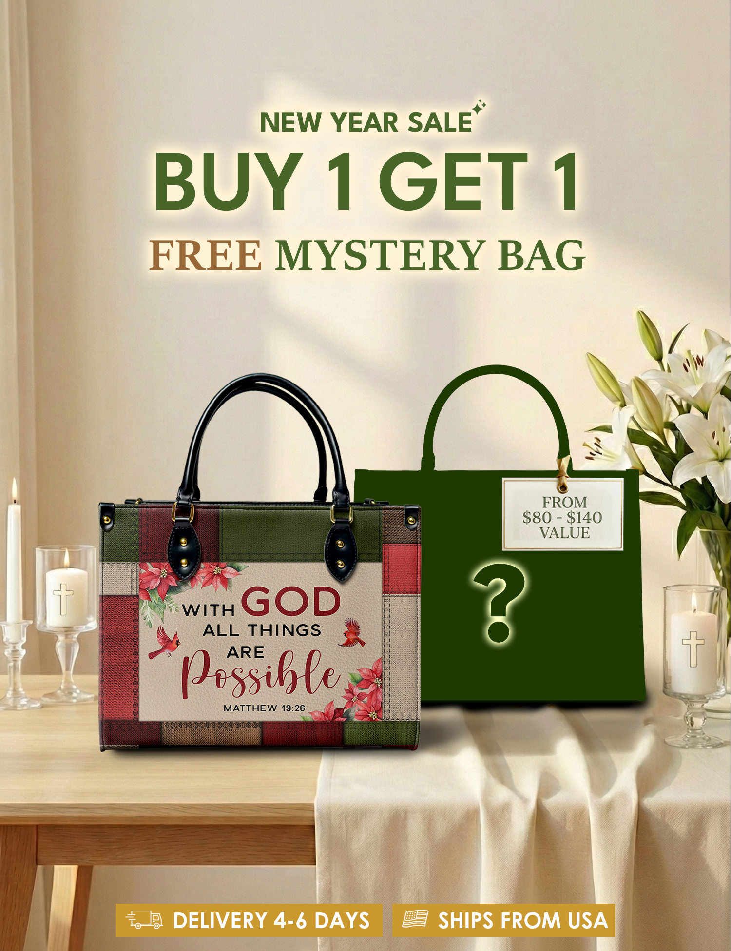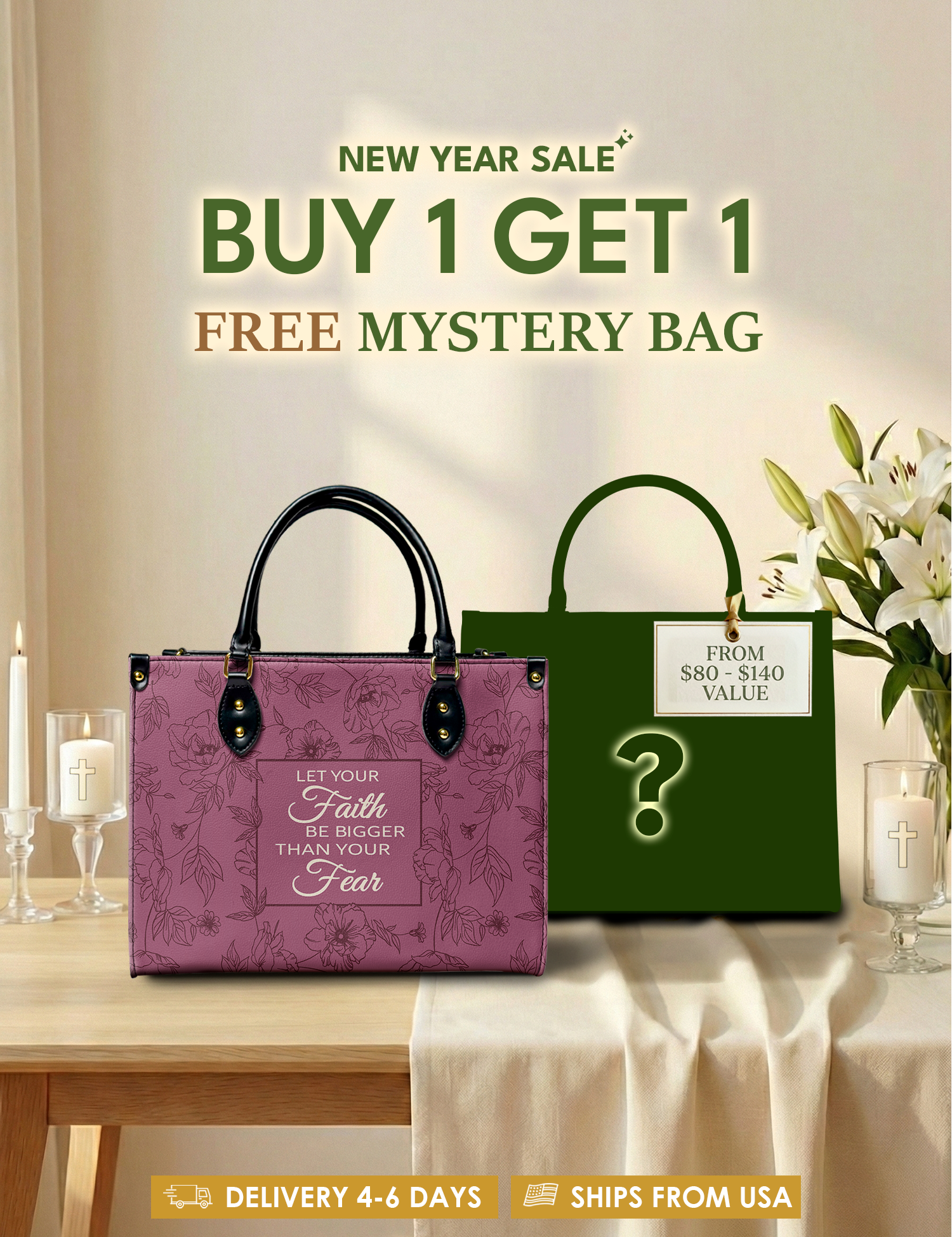 Bold, uplifting, and deeply meaningful. Designed for women of God, these handbags celebrate faith, courage, and the promises of God that lead us forward.