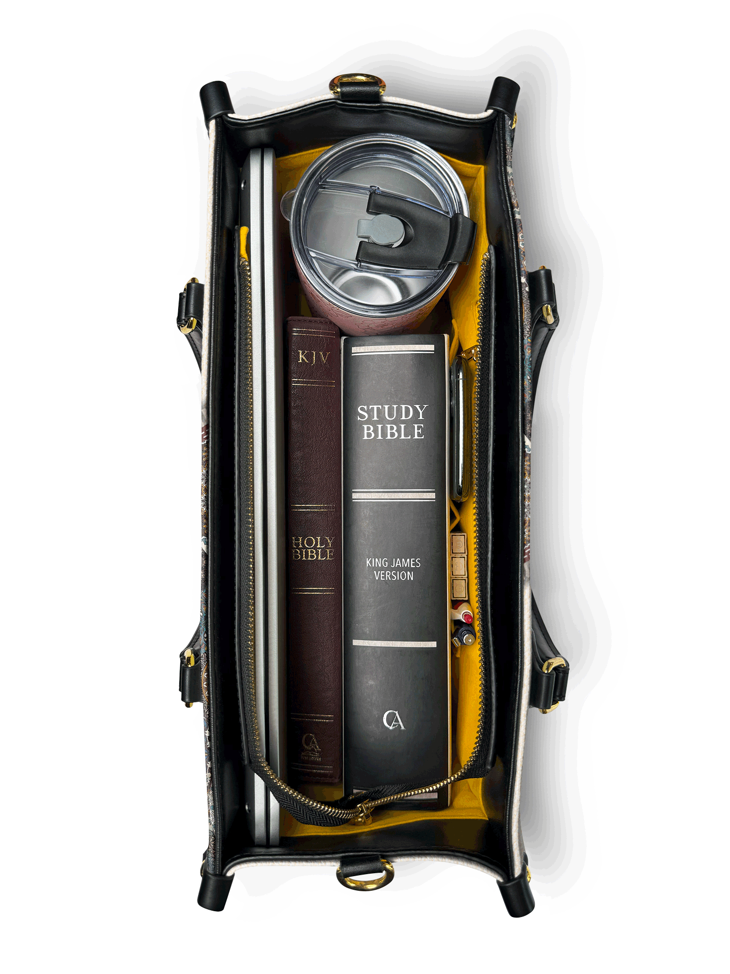 With a secure zipper closure and comfortable handles, it’s perfect for church, Bible study, work, or everyday use, keeping essentials organized and protected.