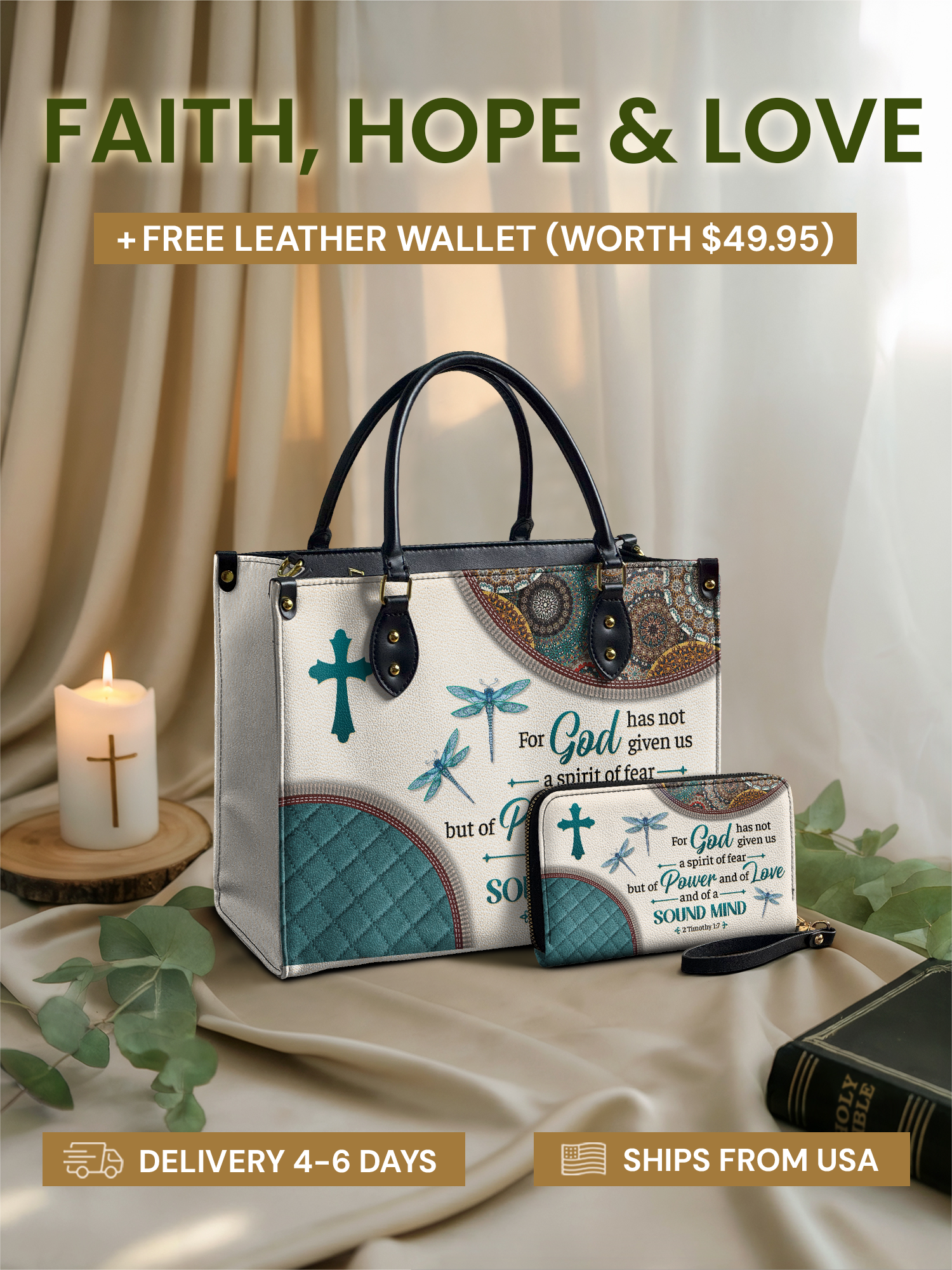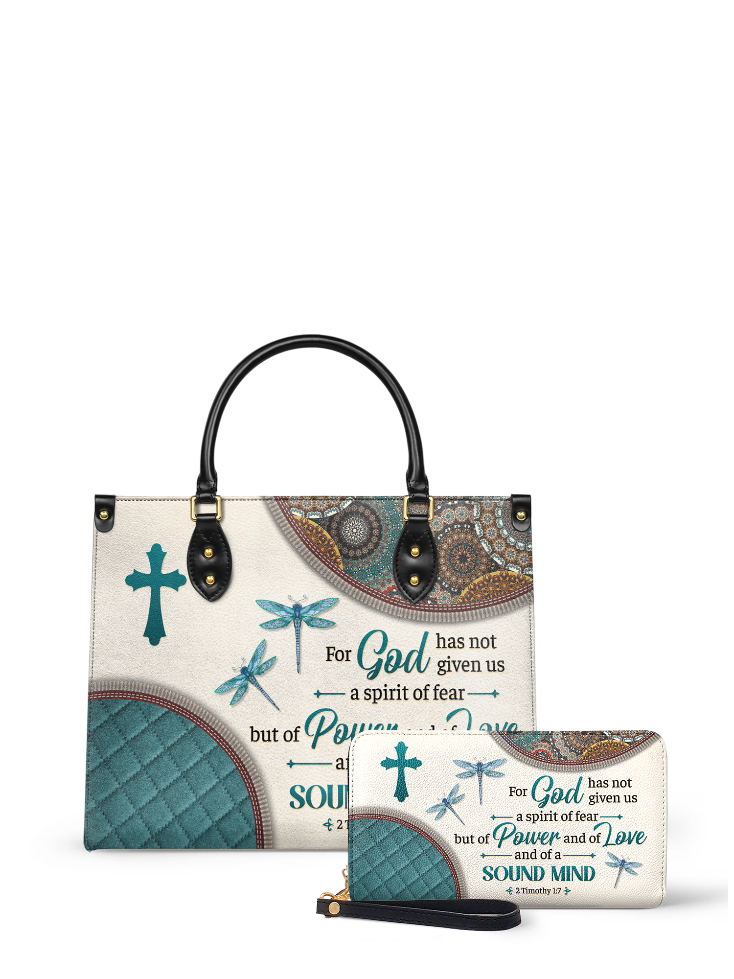Featuring 2 Timothy 1:7, it reminds you that God has given you a spirit of power, love, and a sound mind. The graceful dragonflies symbolize transformation and faith, while intricate patterns add a touch of elegance. Designed for women who walk boldly in His truth, this handbag is a timeless statement of faith and confidence.