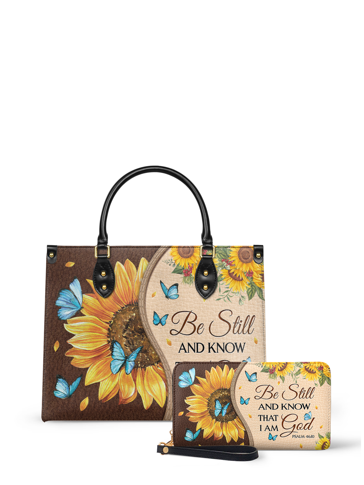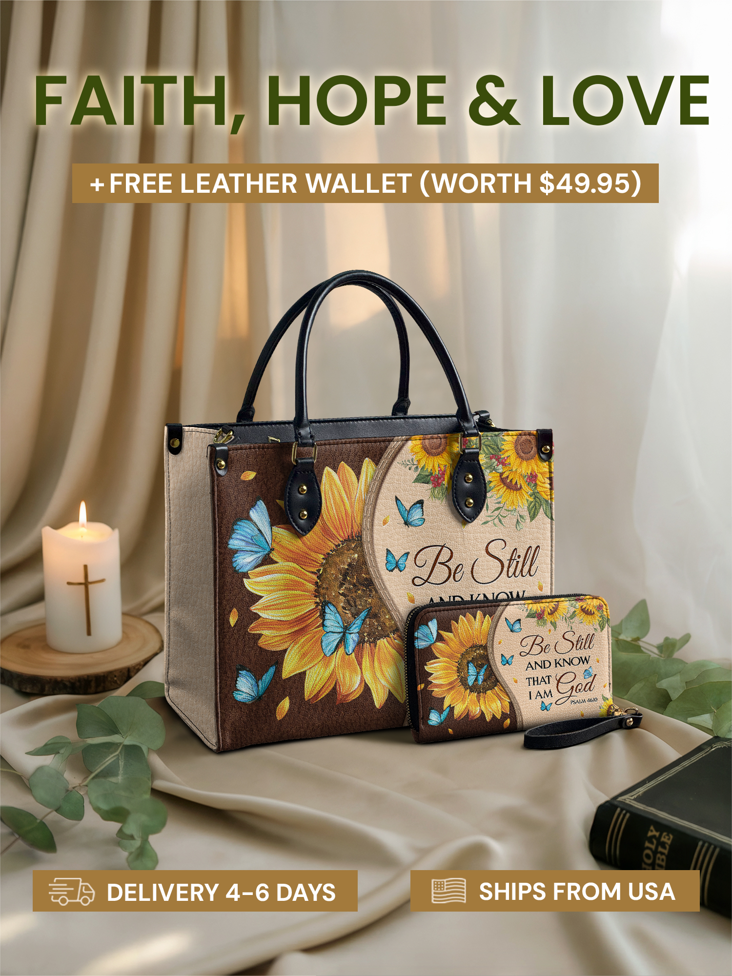 Embrace peace and trust in God’s plan with this beautifully designed leather handbag.