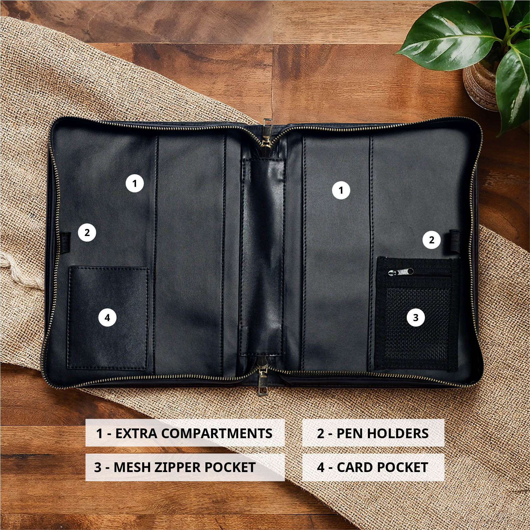 Inside, you’ll find extra compartments for sermon notes, dual pen holders, a mesh zipper pocket for small items, and a card pocket. Thoughtfully designed to protect what matters most.