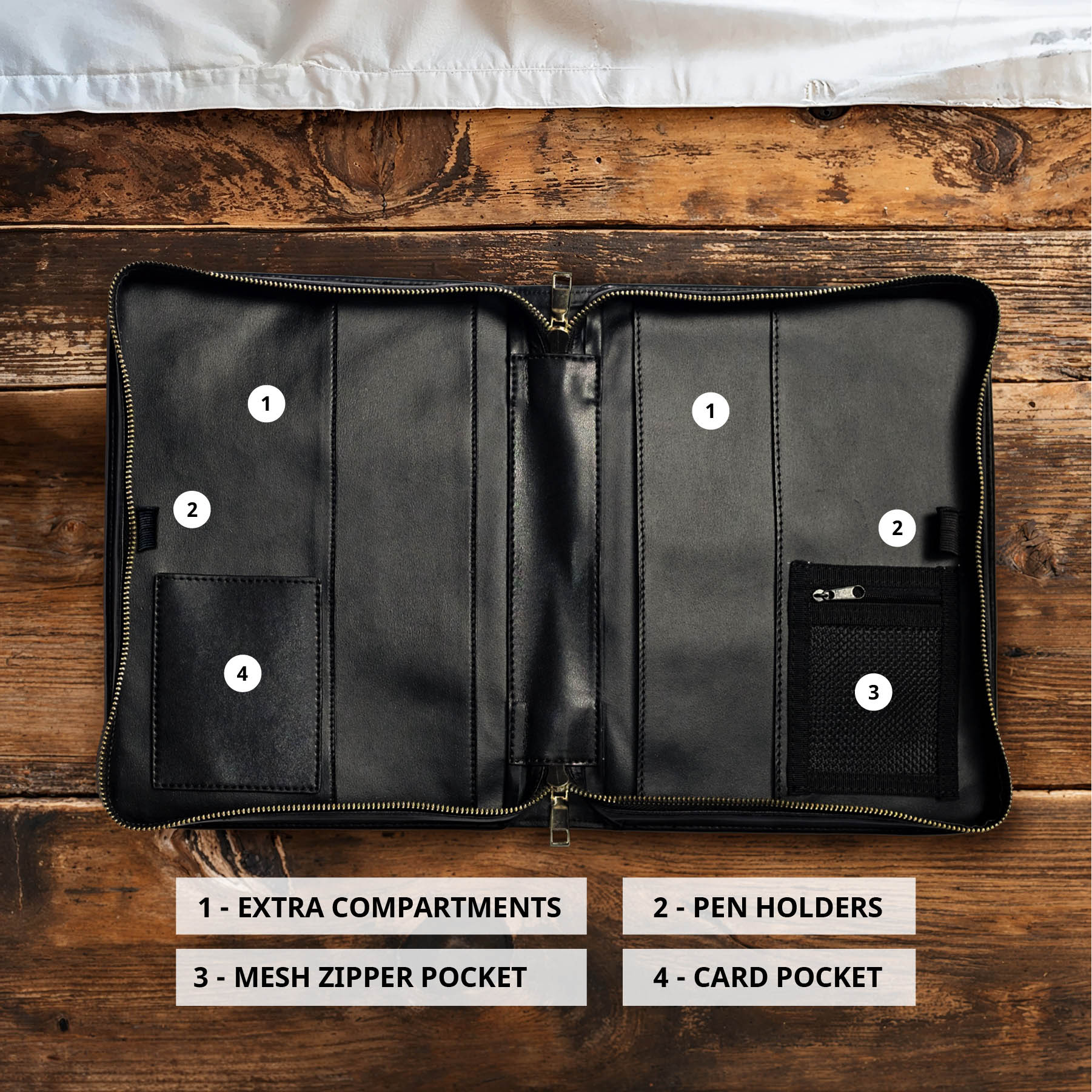 Inside, you’ll find extra compartments for sermon notes, dual pen holders, a mesh zipper pocket for small items, and a card pocket. Thoughtfully designed to protect what matters most.
