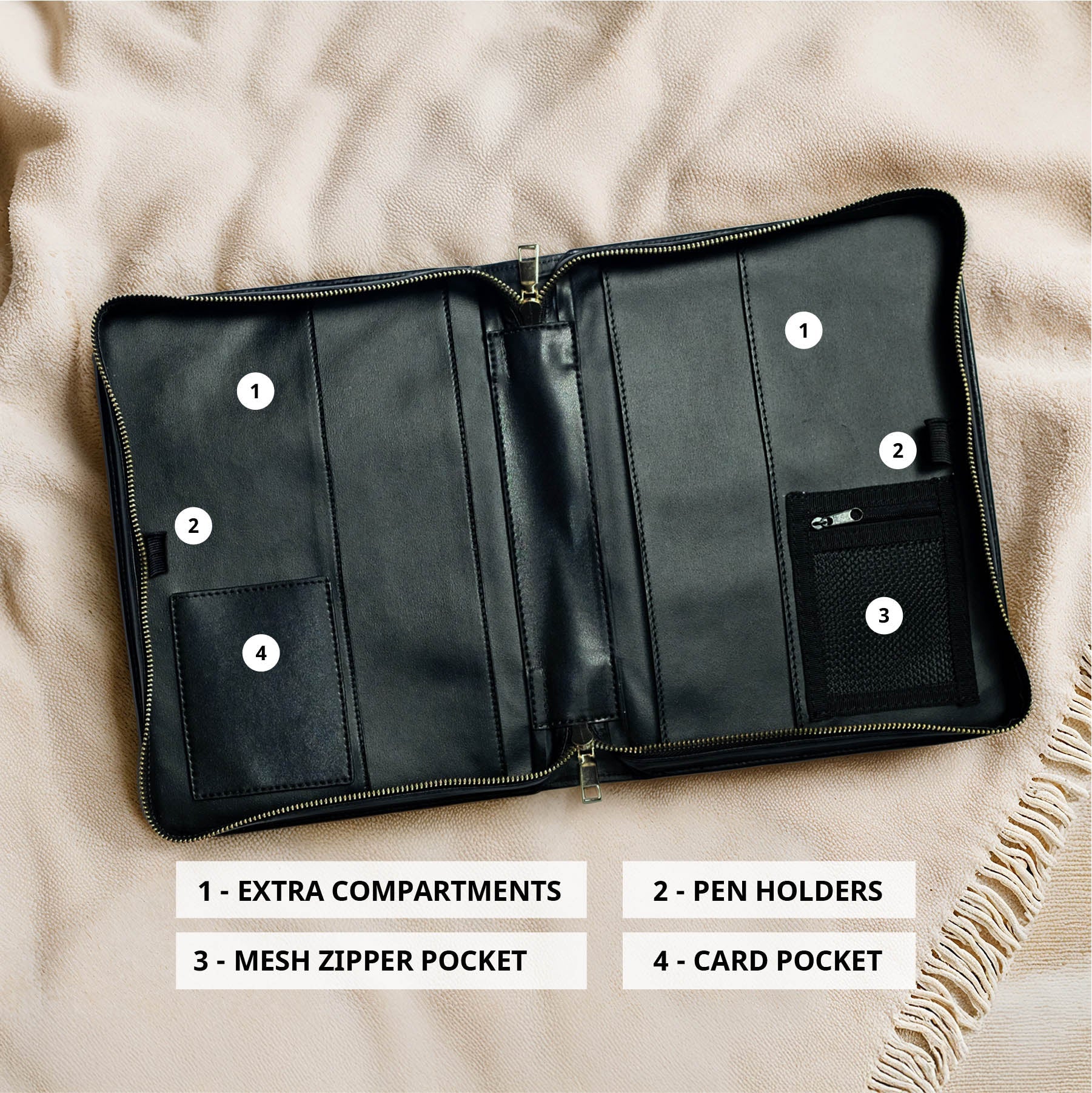 Inside, you’ll find extra compartments for sermon notes, dual pen holders, a mesh zipper pocket for small items, and a card pocket. Thoughtfully designed to protect what matters most.
