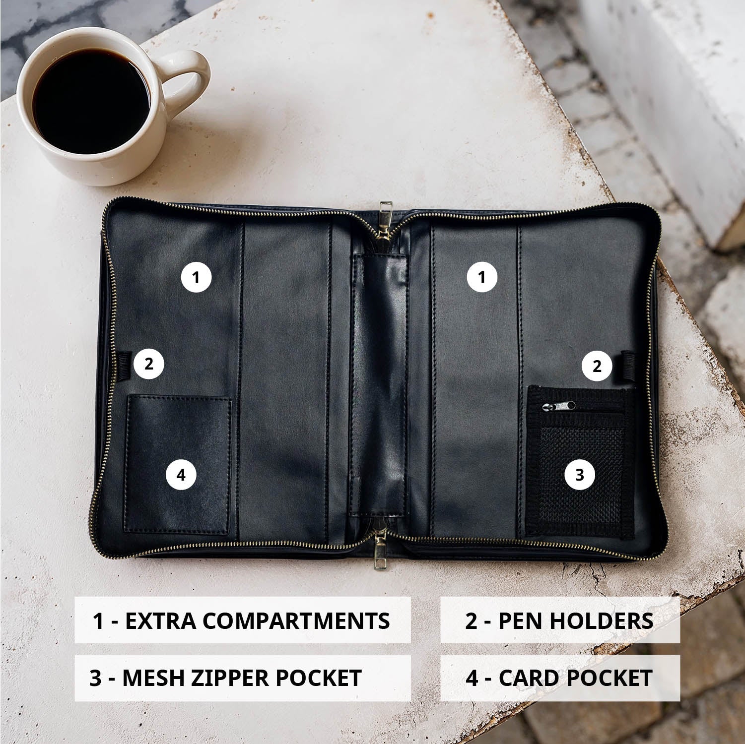 Inside, you’ll find extra compartments for sermon notes, dual pen holders, a mesh zipper pocket for small items, and a card pocket. Thoughtfully designed to protect what matters most.
