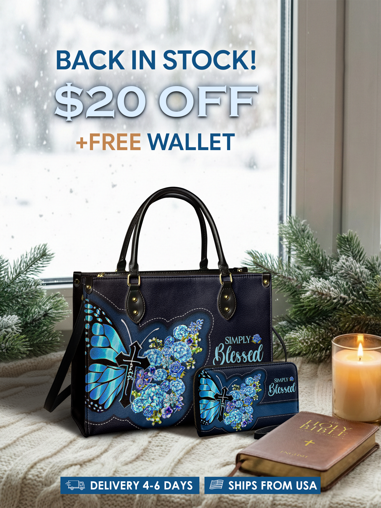 A heartfelt expression of gratitude, this handbag reminds you that a life of faith is simply blessed.