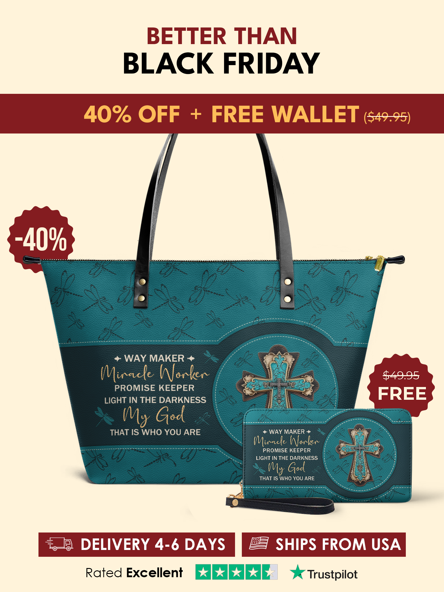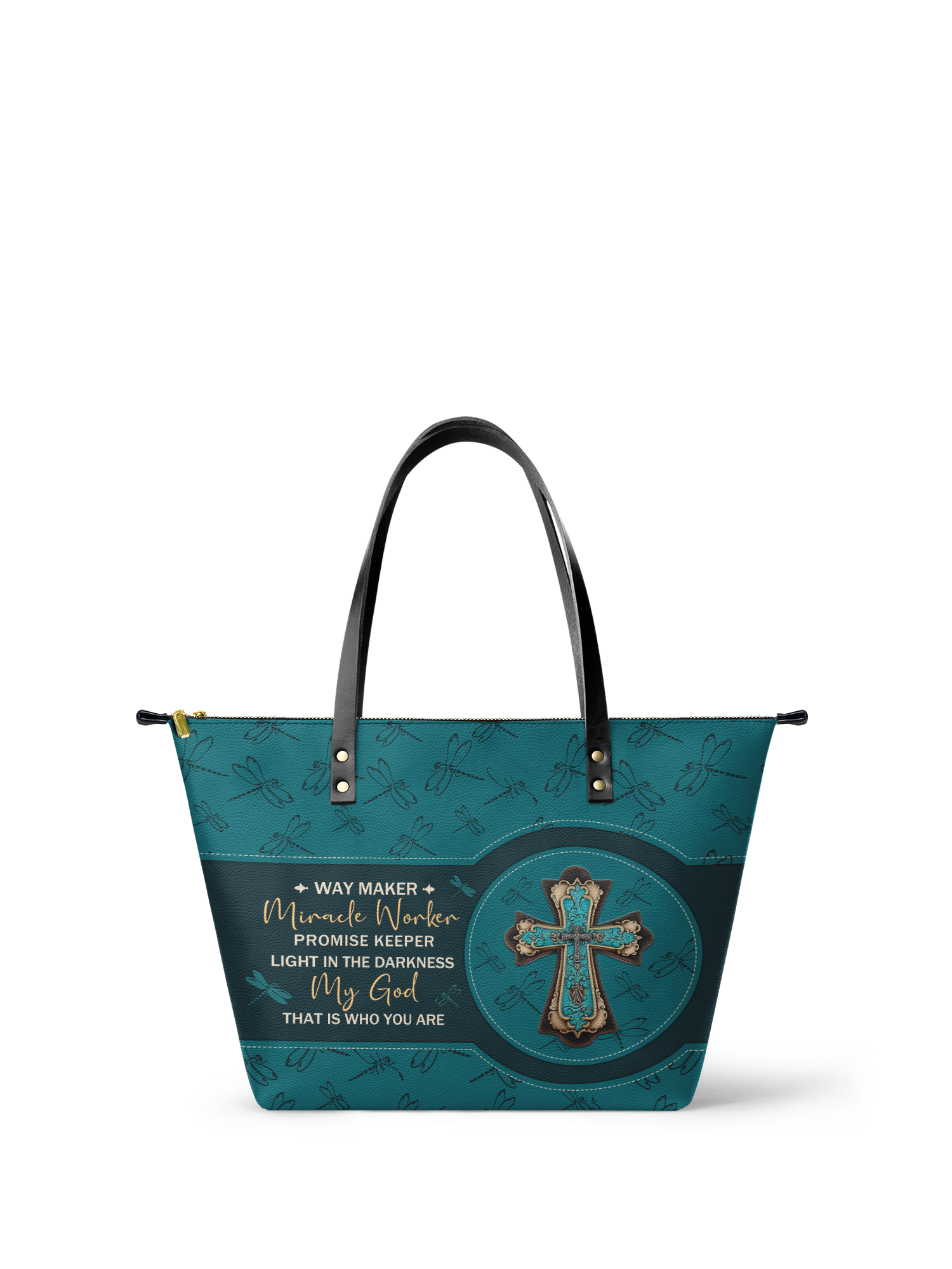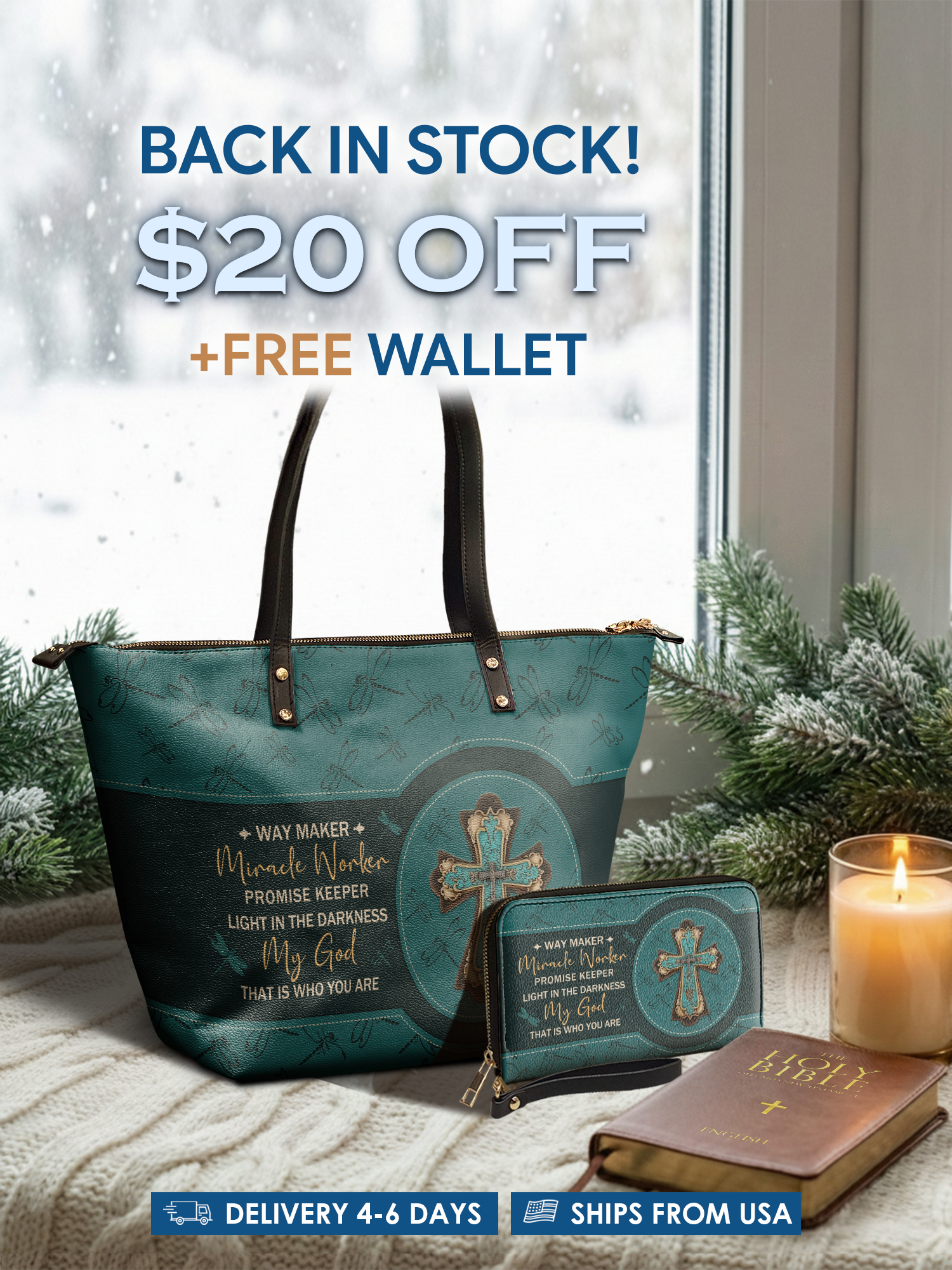 This tote bag is spacious and practical, easily fitting 3 large print Bibles, a 13" laptop, books, and daily must-haves.