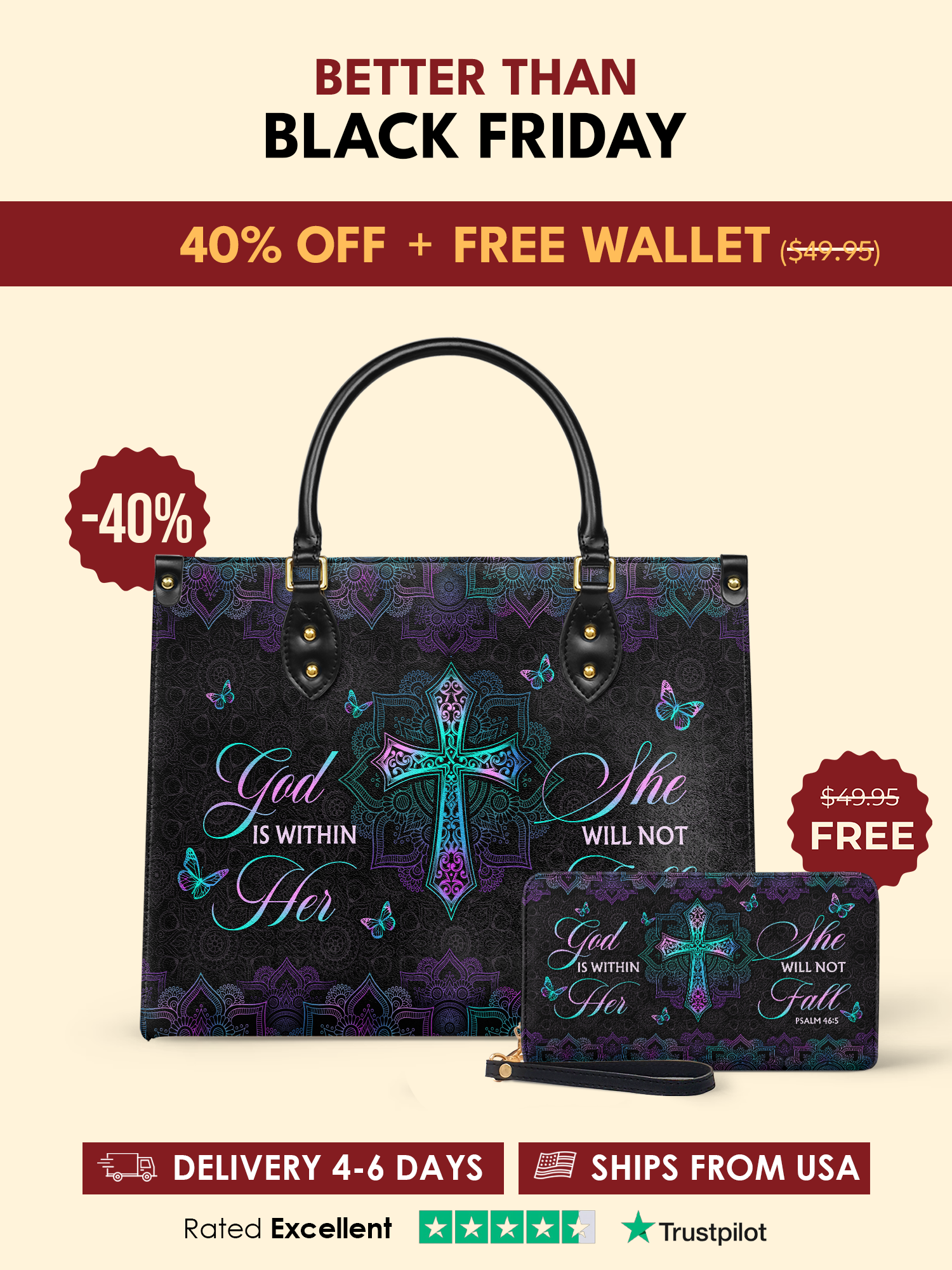 A symbol of unwavering faith, this handbag is inspired by Psalm 46:5—God’s presence gives strength and stability.