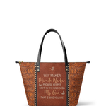 This tote bag is spacious and practical, easily fitting 3 large print Bibles, a 13" laptop, books, and daily must-haves.