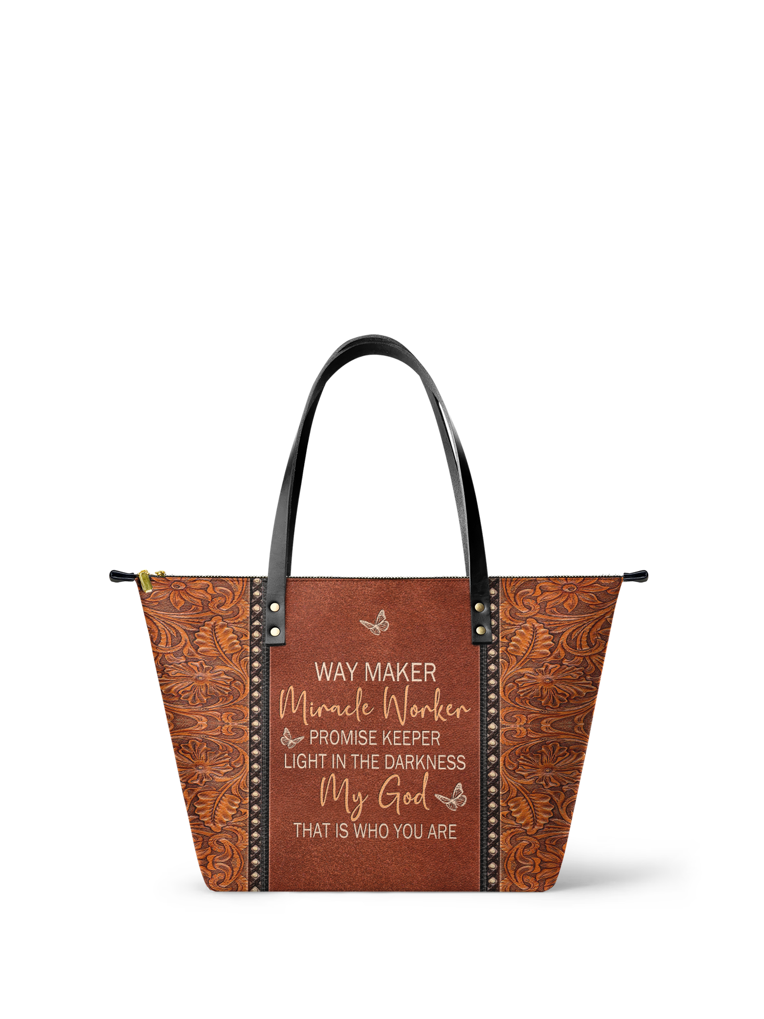 This handbag is spacious yet stylish, fitting up to 3 large print Bibles, a 13" laptop, books, wallet, and more.