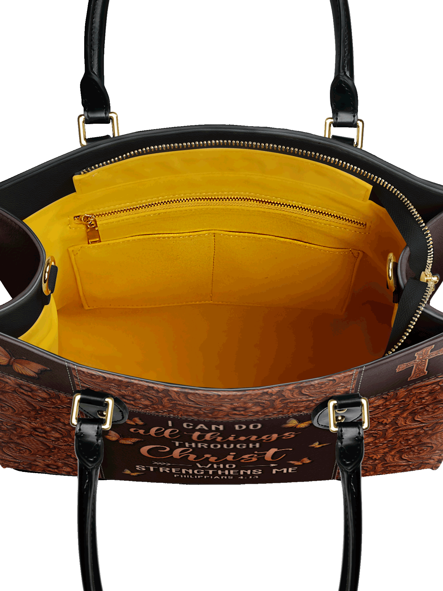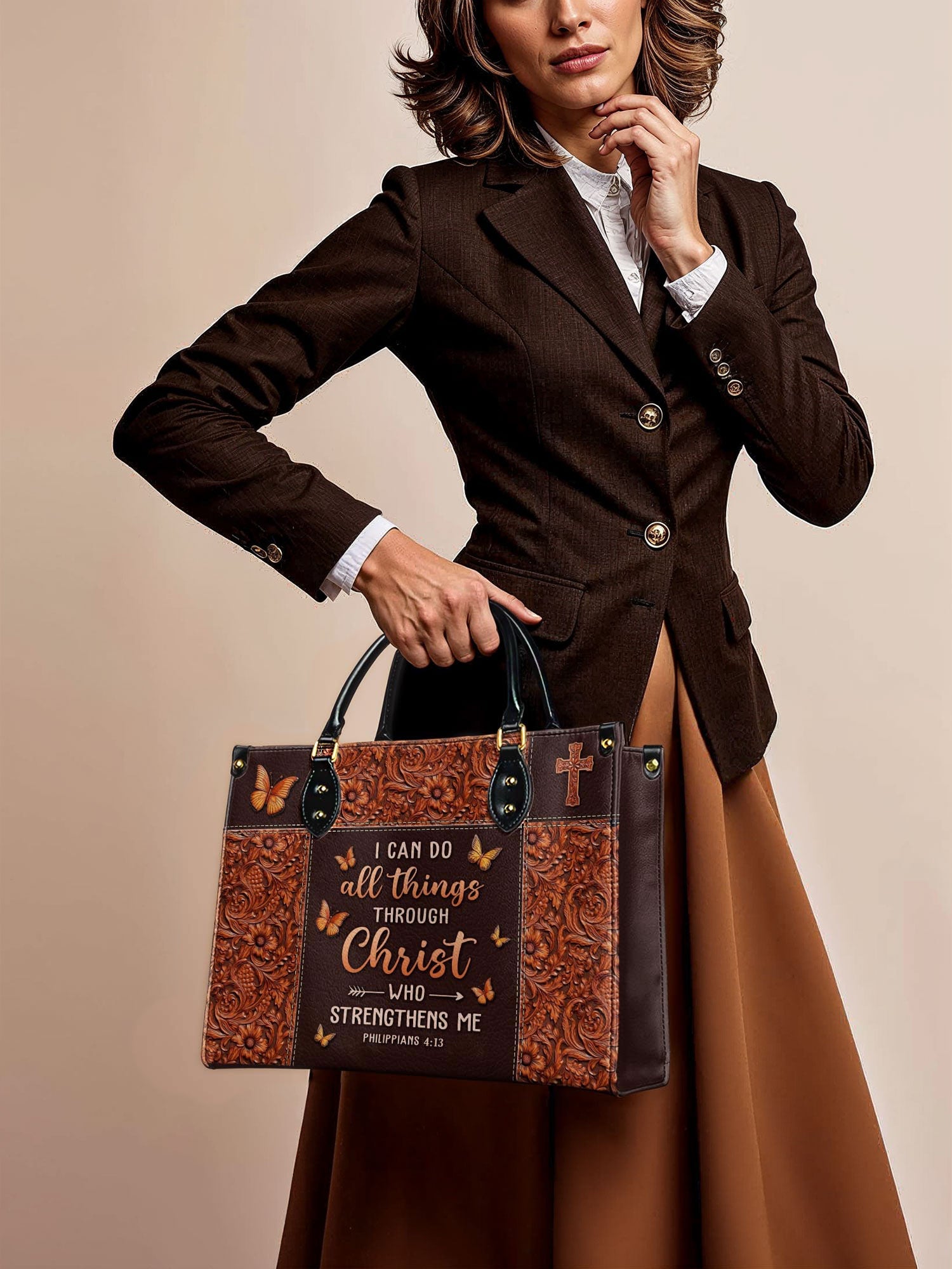 Crafted for women of faith, this elegant handbag is a reflection of strength and devotion.