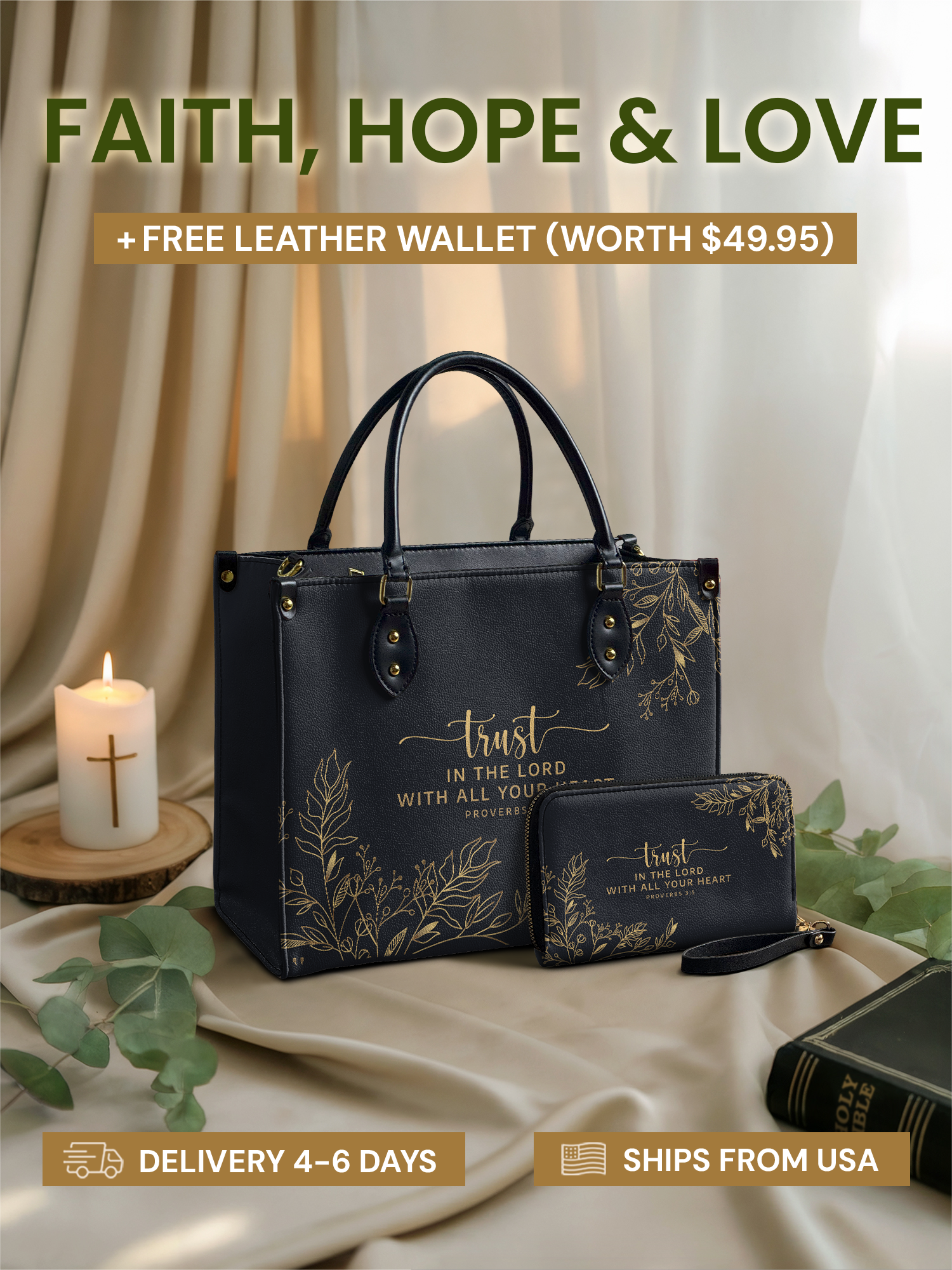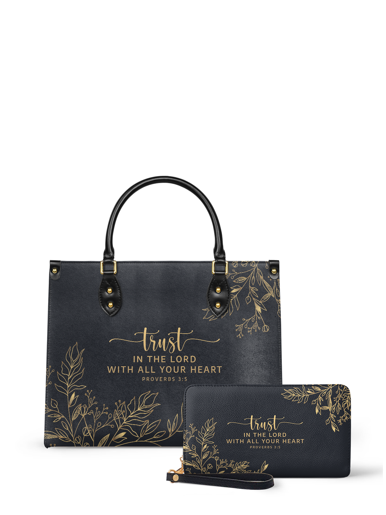 Trust in the Lord’s plan with this elegantly designed handbag, inspired by Proverbs 3:5.
