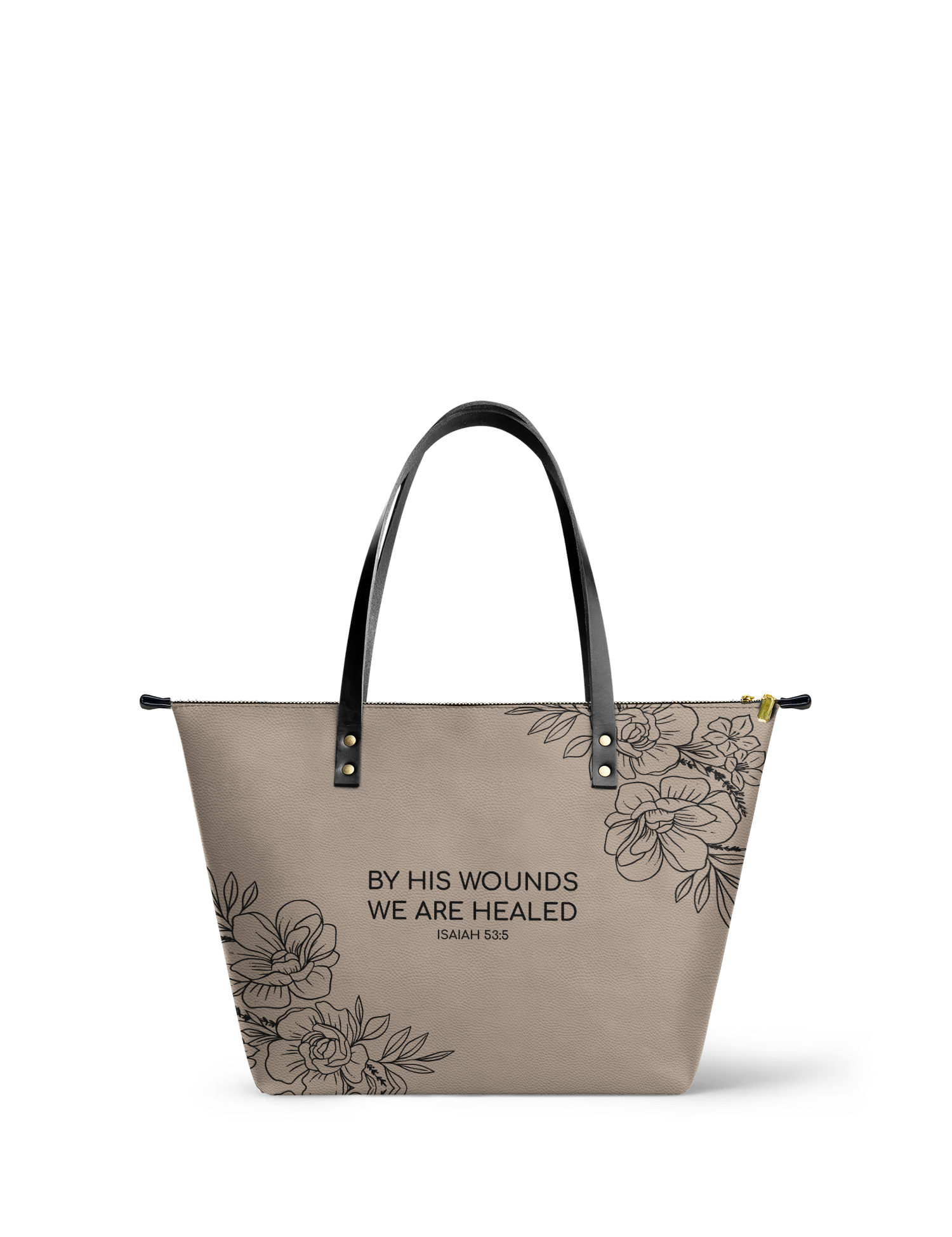 "Complete" - Isaiah 53:5 Leather Tote Bag