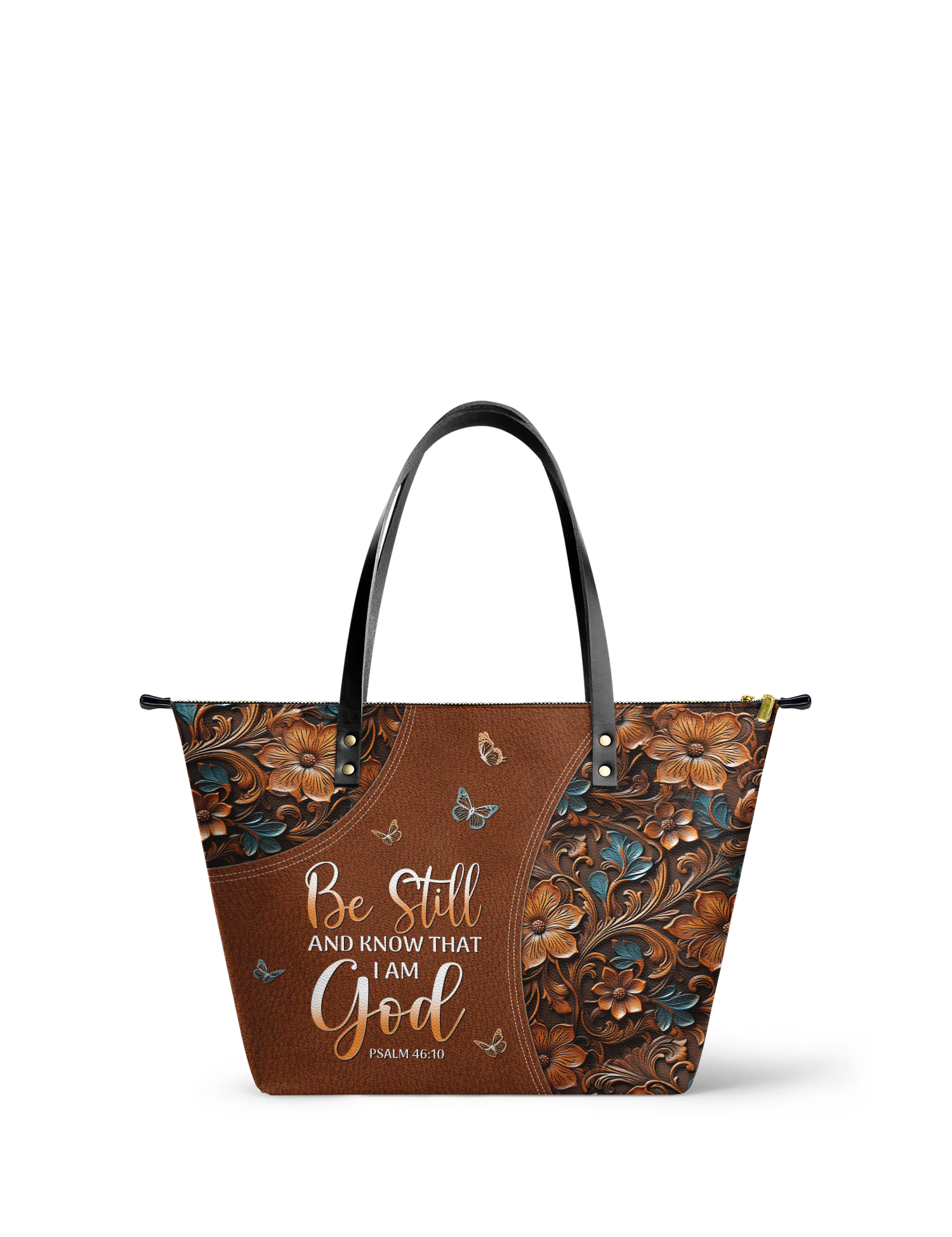 "Stillness" - Psalm 46:10 Leather Tote Bag