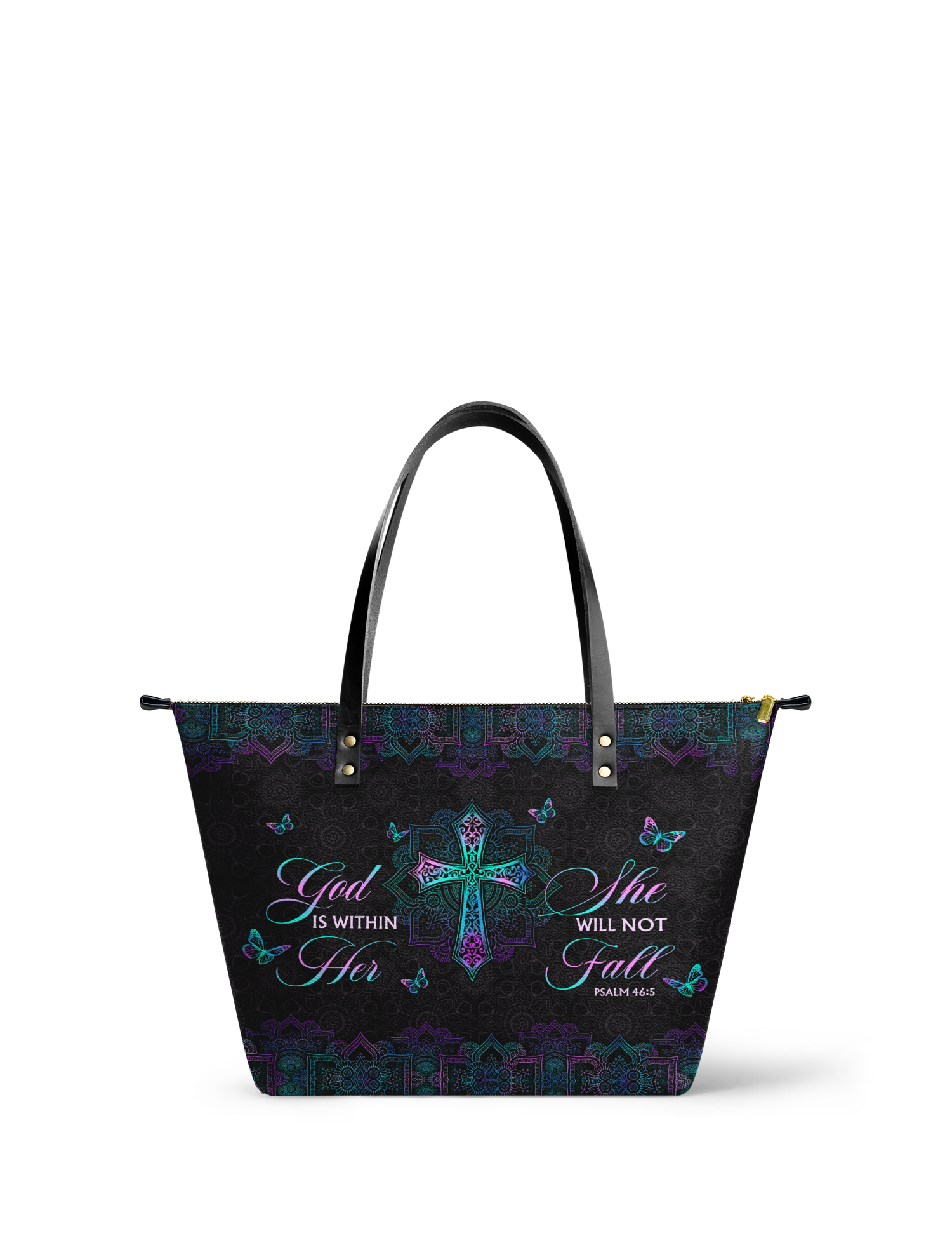 "Unshaken" - Psalm 46:5 Leather Tote Bag