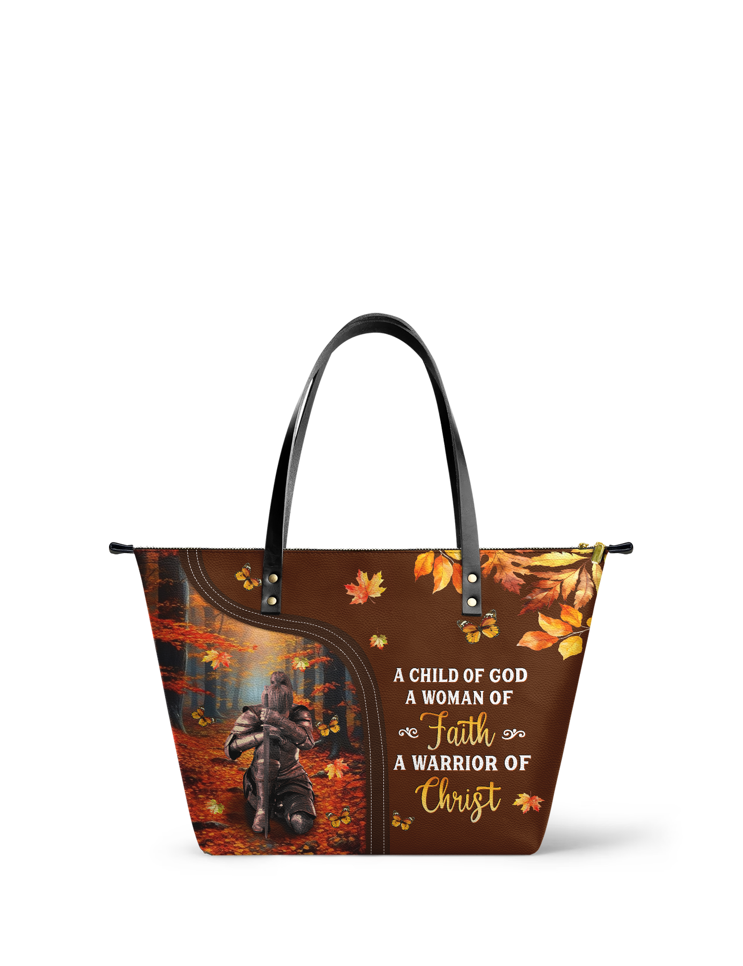 "Courage" - Joshua 1:9 Leather Tote Bag