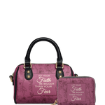 I just love my new bag! The vegan leather is very soft and pliable, which I love! I have already used my bag for Bible study and will also be using it on Sunday's for my GriefShare class. I am able to fit all my materials for both applications which gives me a comfortable & beautiful way to share my faith with others. I will love carrying a special verse on my bag that God gave me from Psalm 46 while walking a painful journey of grief. "Be still and know that I am God." He had some very special things to share with me when I got still in His presence.