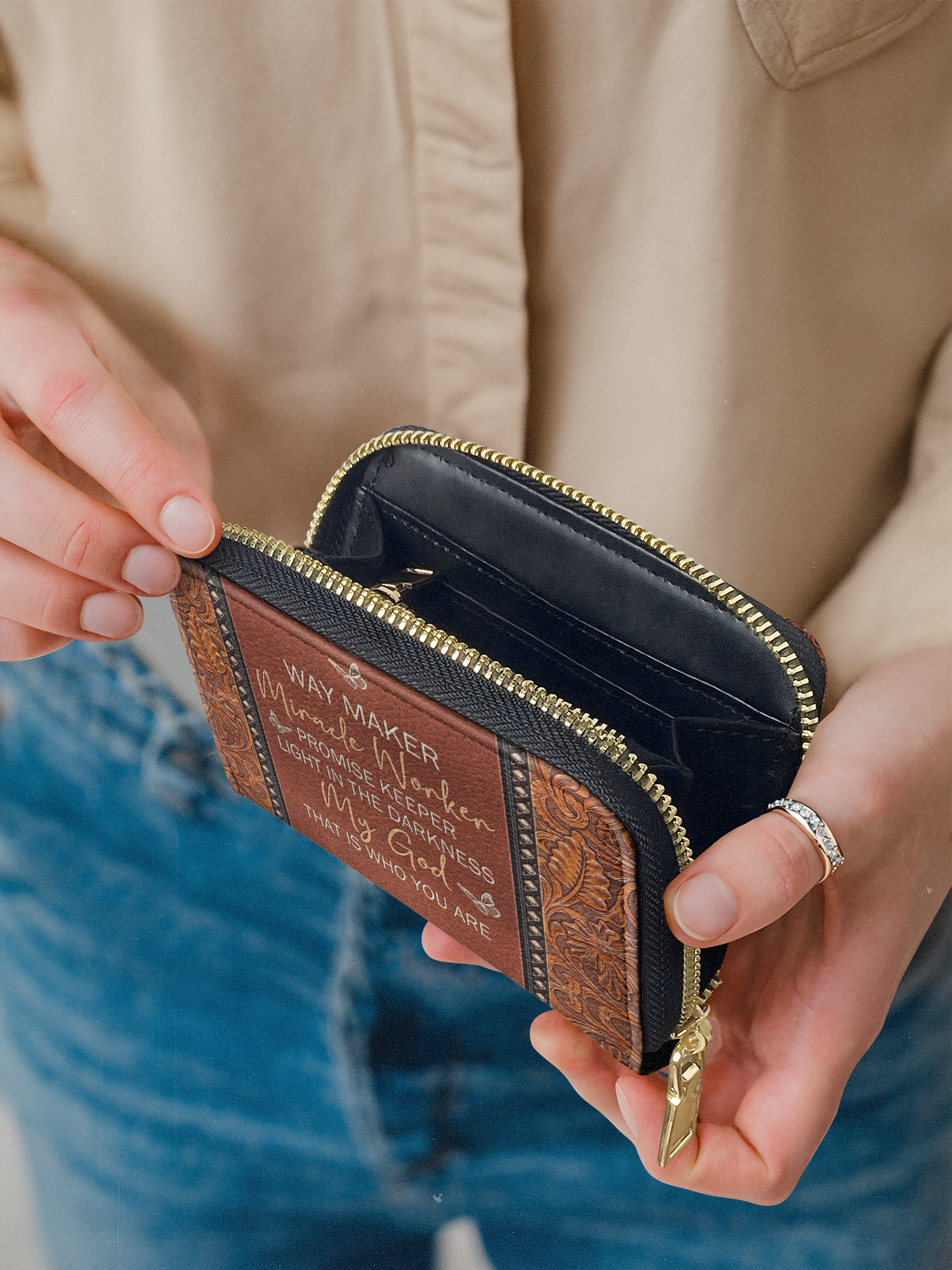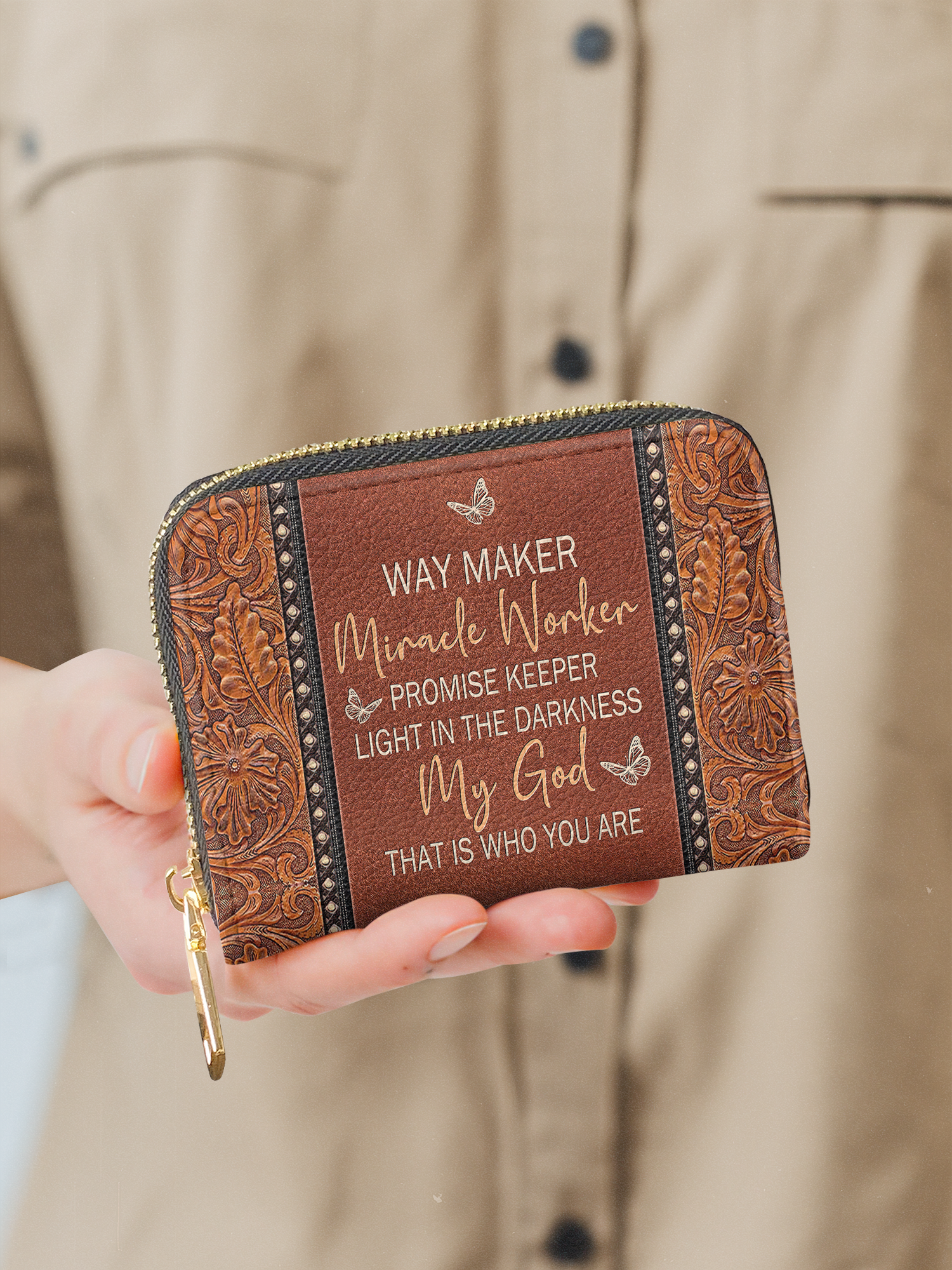 Finished with a smooth zipper closure and a compact silhouette that fits easily into any bag or pocket, it’s perfect for errands, nights out, or travel.