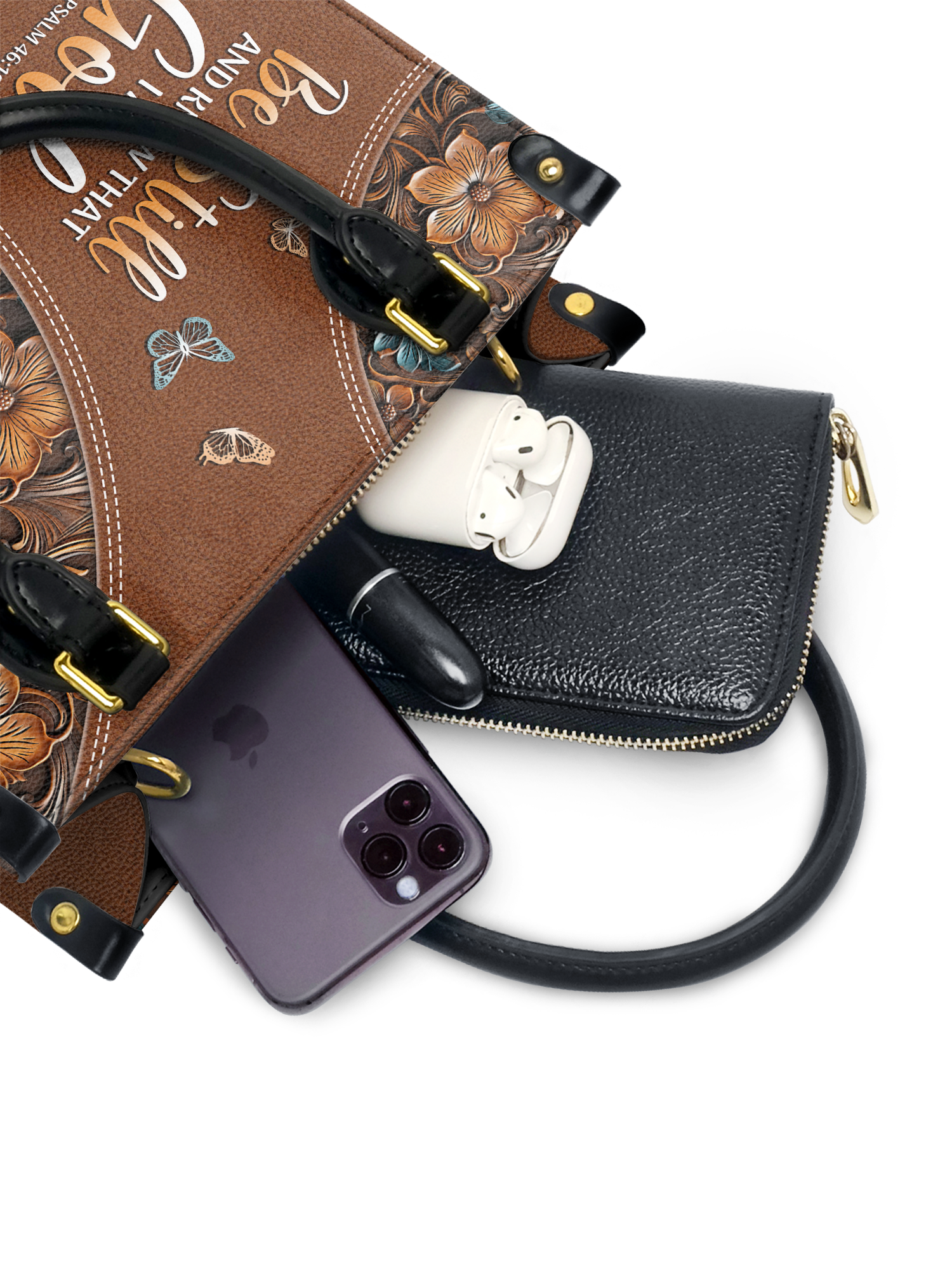 "Stillness" - Psalm 46:10 Small Leather Handbag