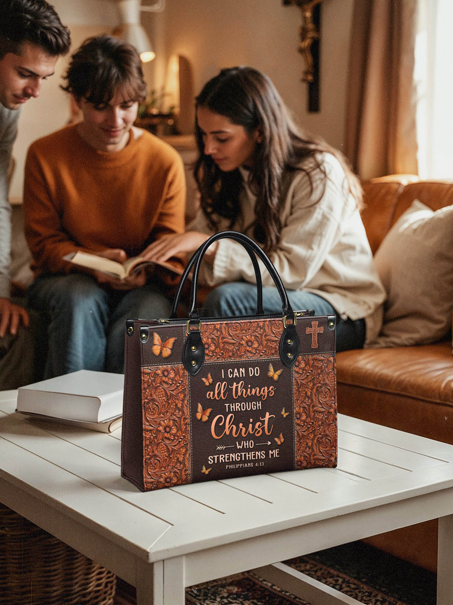 This handbag is spacious yet stylish, fitting up to 3 Bibles, a 14" laptop, books, wallet, and more.