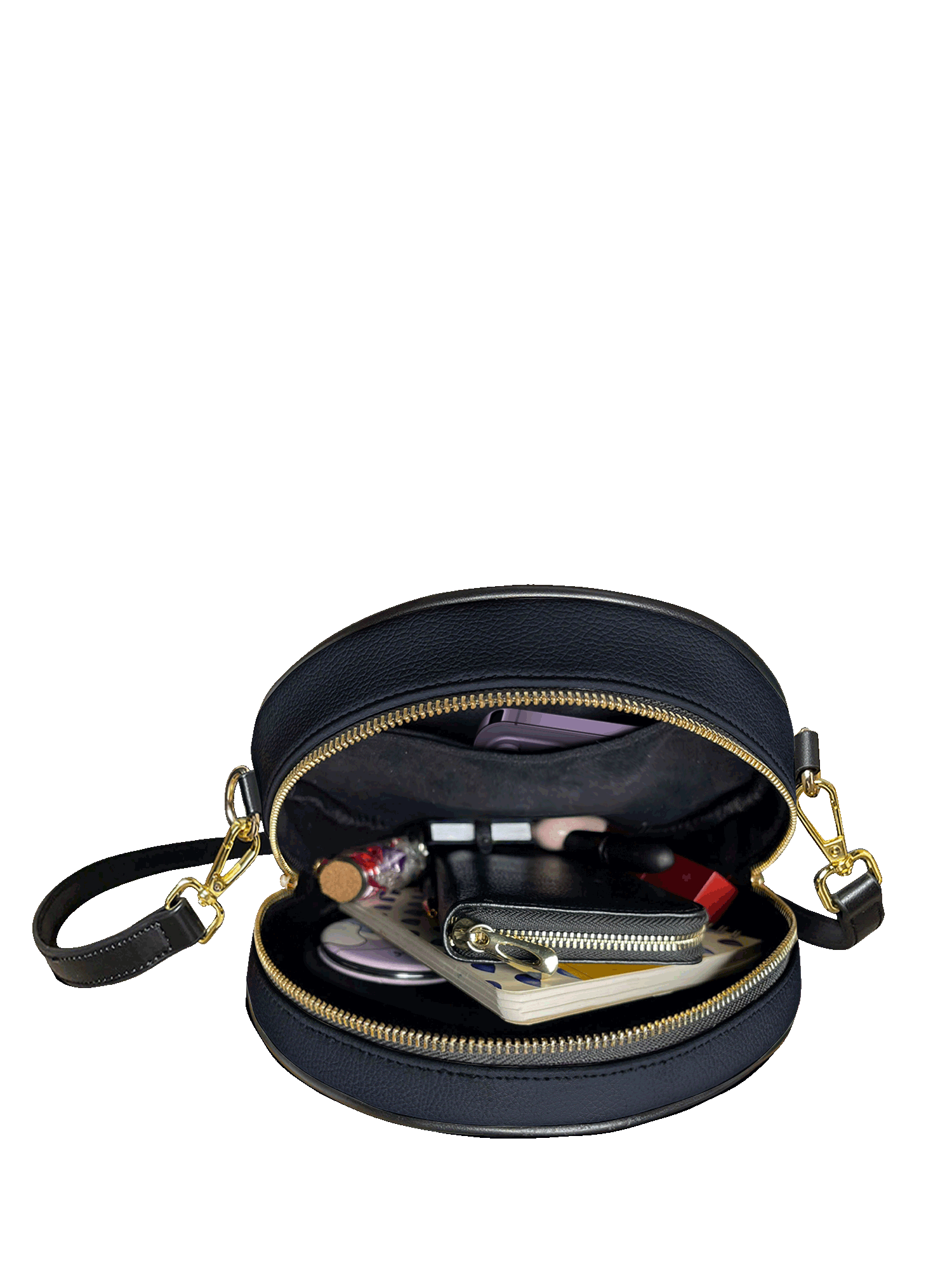 This circle crossbody bag is crafted from premium vegan leather or luxurious Italian leather for a soft, durable finish that lasts.