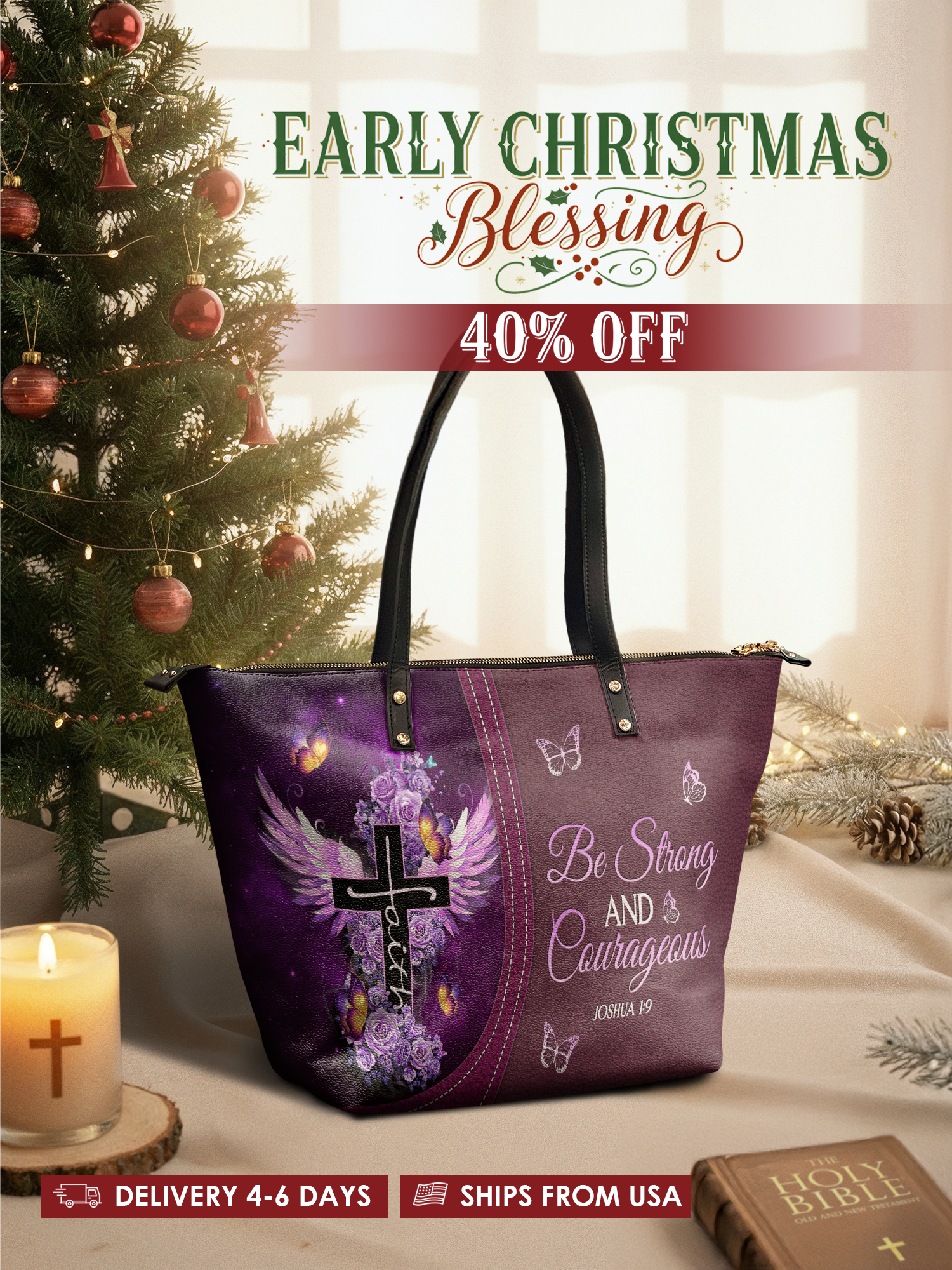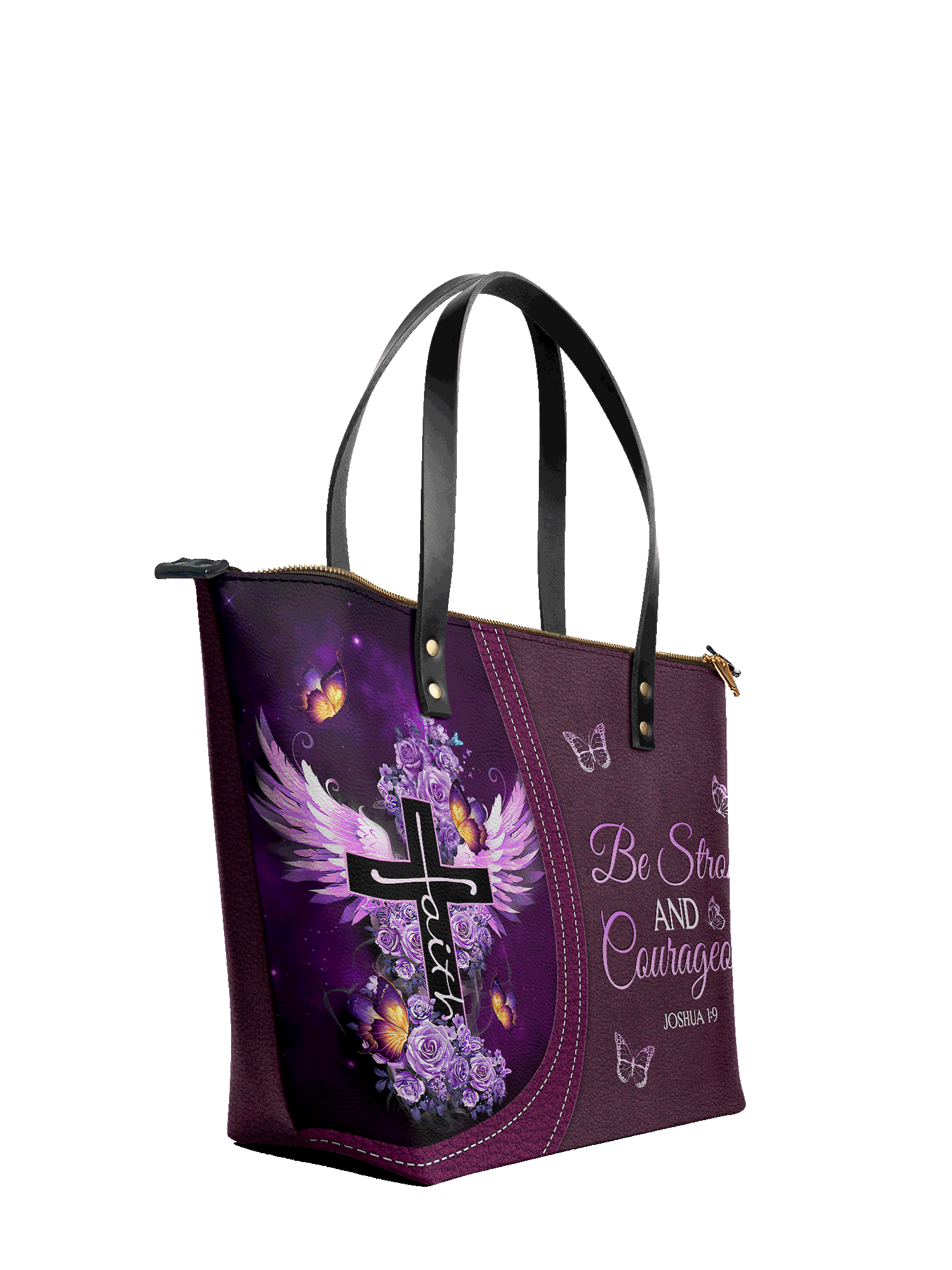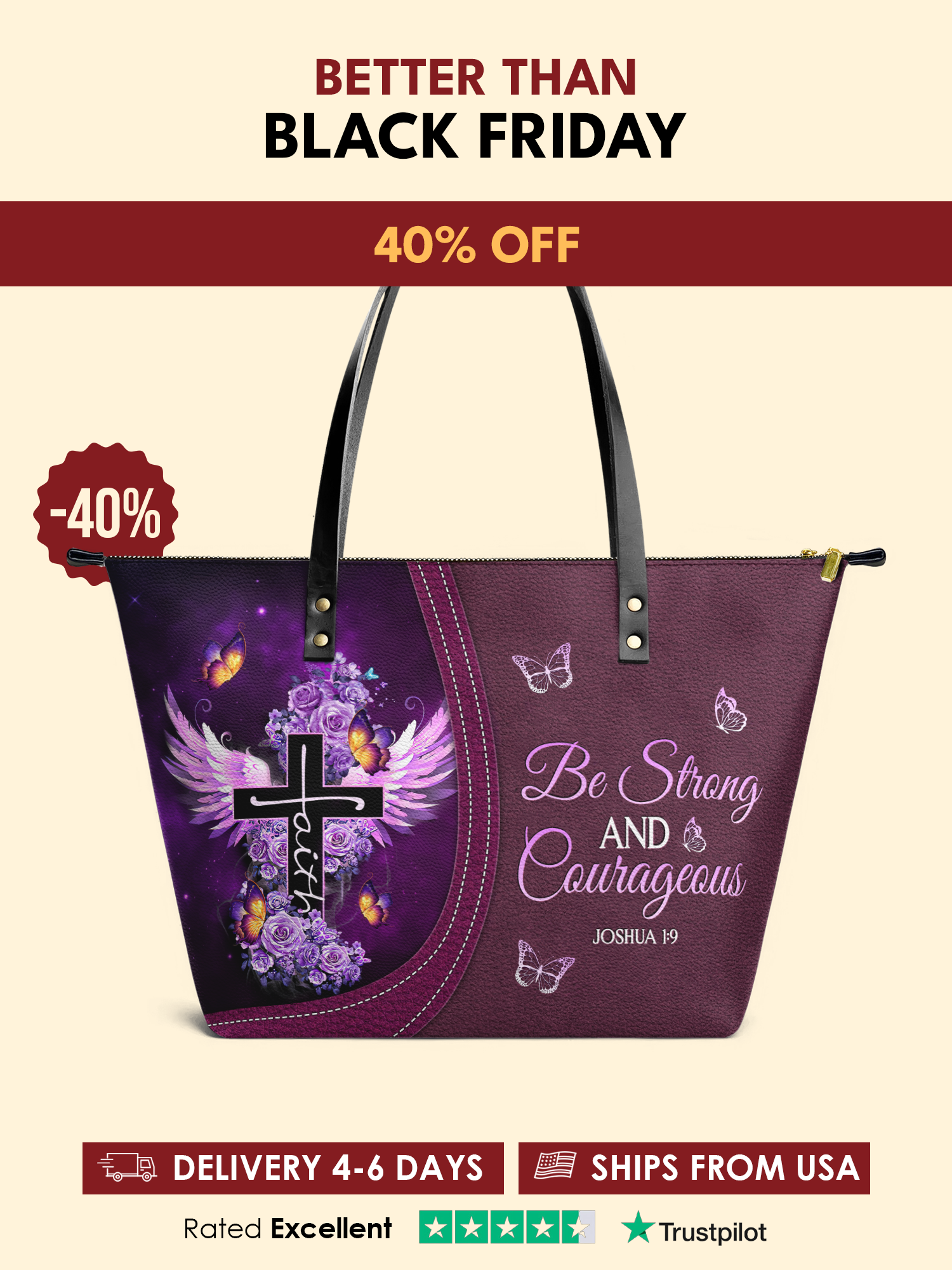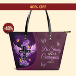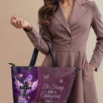 "Courage" - Joshua 1:9 Leather Tote Bag