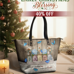 This tote bag is spacious and practical, easily fitting 2 large print Bibles, a 13" laptop, books, and daily must-haves.