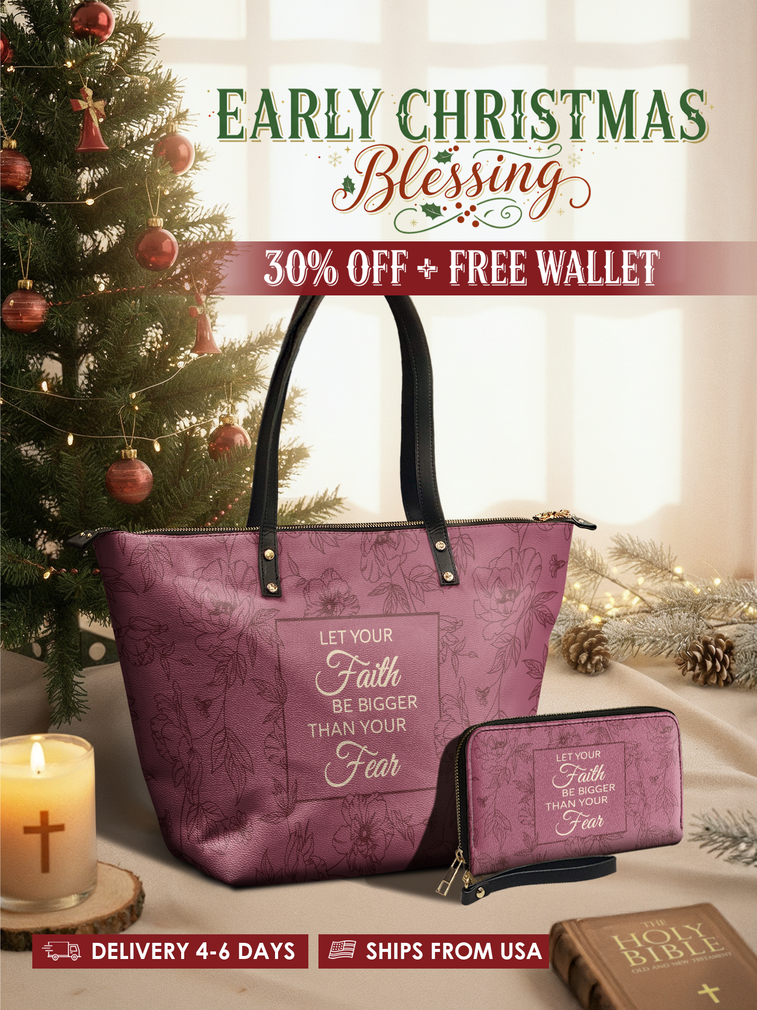 This tote bag is spacious and practical, easily fitting 3 large print Bibles, a 13" laptop, books, and daily must-haves.