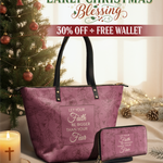 This handbag is spacious yet stylish, fitting up to 3 large print Bibles, a 13" laptop, books, wallet, and more.