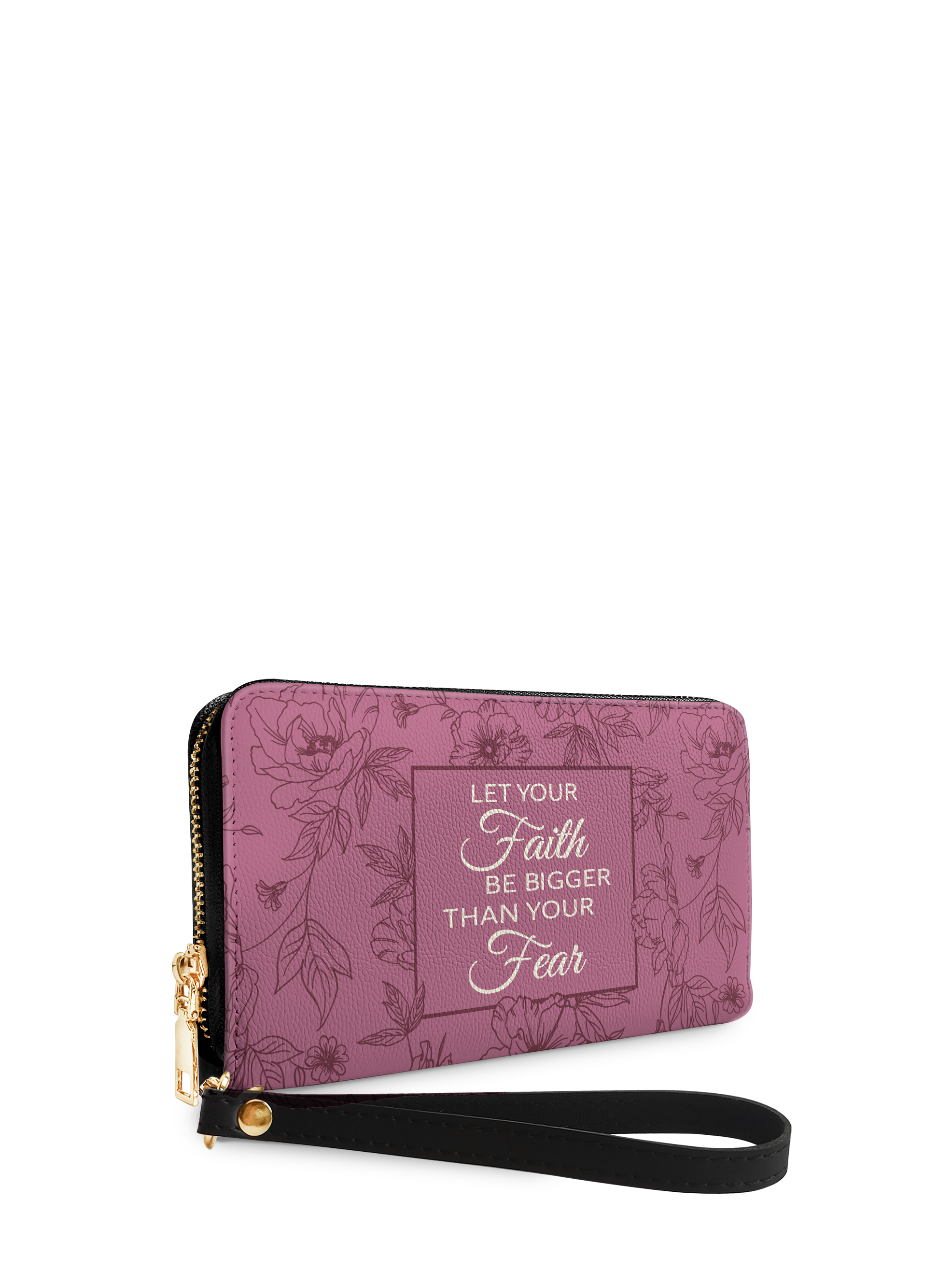 This wallet is spacious and stylish, holding beauty essentials, cash, cards, and a phone with ease.