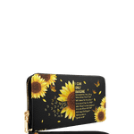 This wallet is spacious and stylish, holding beauty essentials, cash, cards, and a phone with ease.