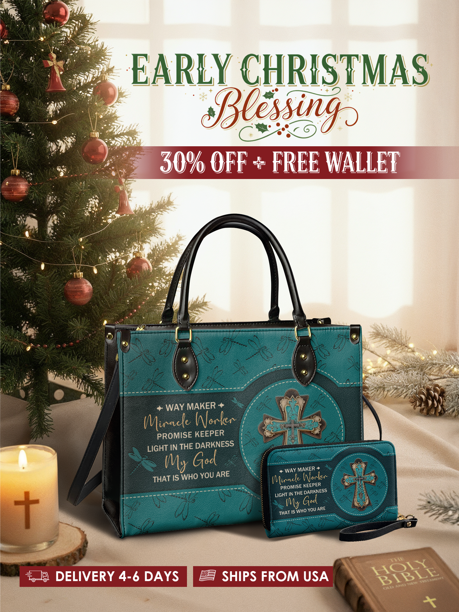 A tribute to unwavering faith, this elegant handbag reflects the powerful truth that God is our Way Maker, Miracle Worker, and Promise Keeper—the light in our darkest moments.
