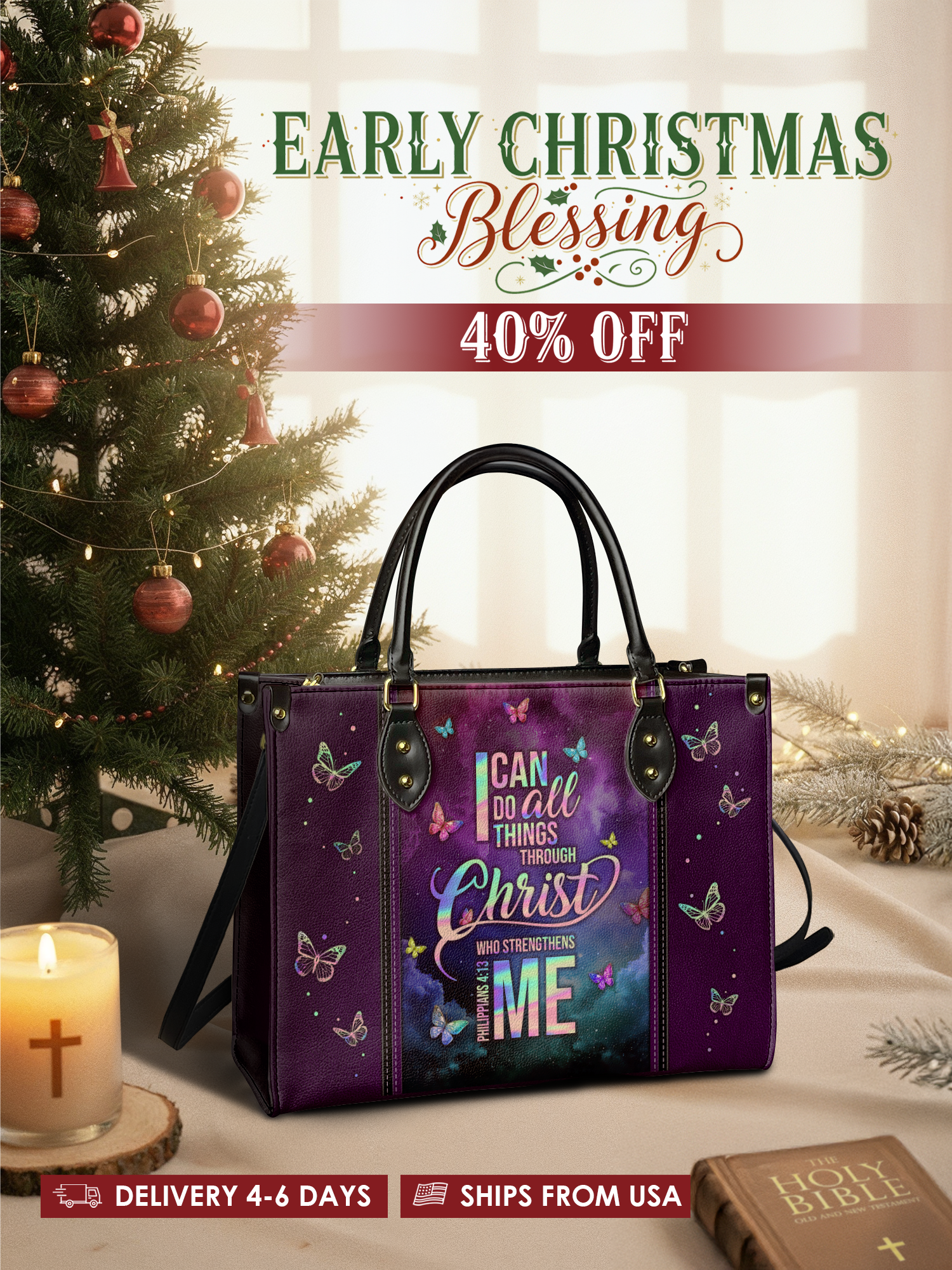 With a secure zipper closure and comfortable handles, it’s perfect for church, Bible study, work, or everyday use, keeping essentials organized and protected.