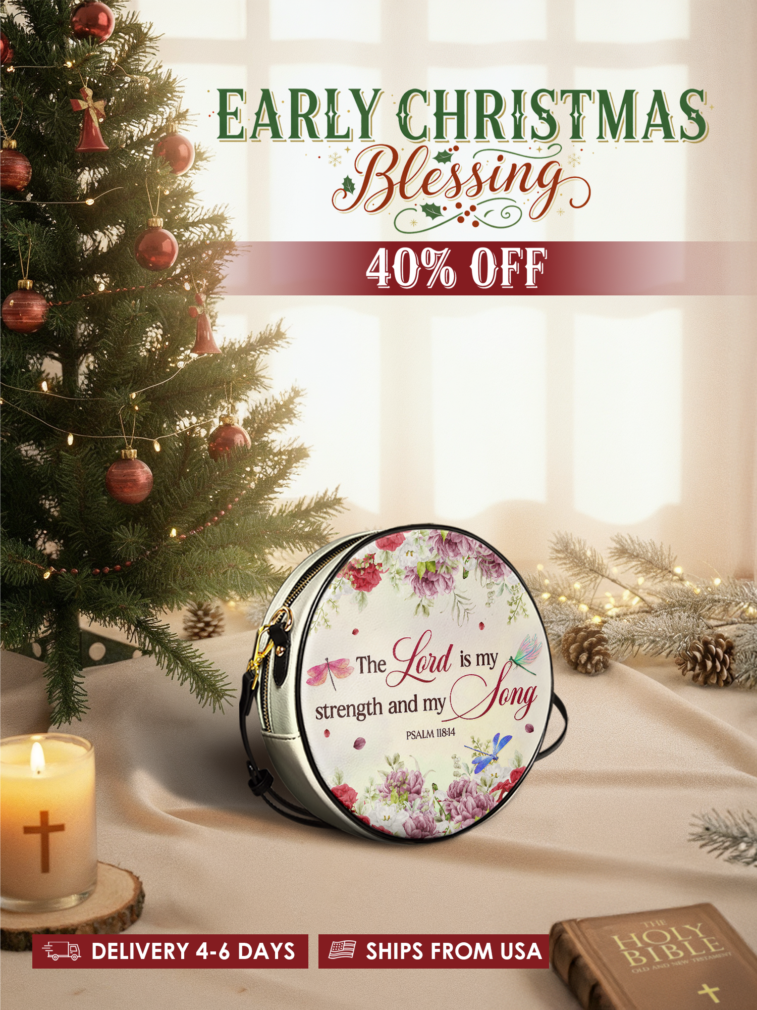 "Melody" - Psalm 118:14 Circle Crossbody Bag