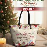 This tote bag is spacious and practical, easily fitting 2 large print Bibles, a 13" laptop, books, and daily must-haves.