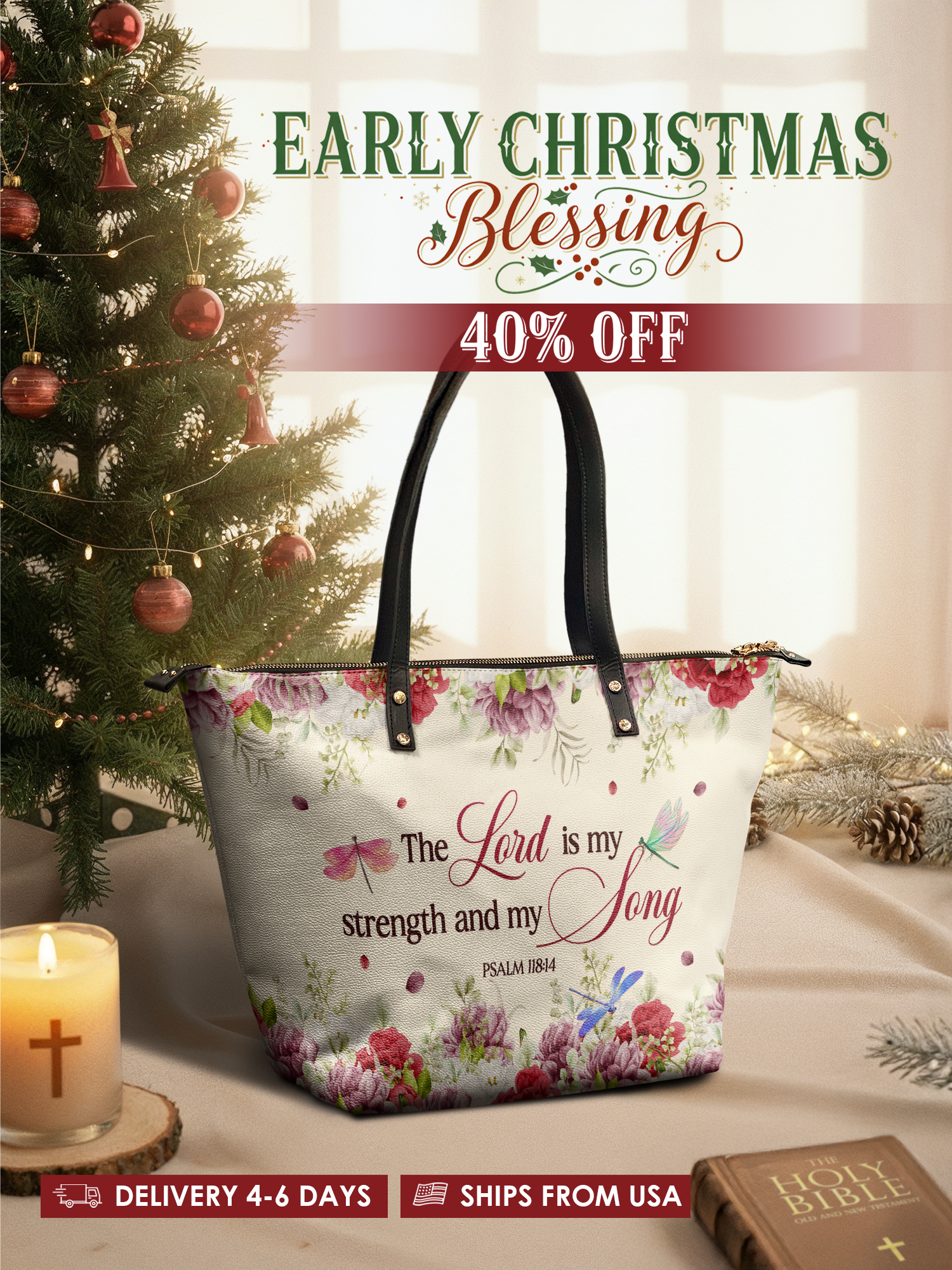 "Melody" - Psalm 118:14 Leather Tote Bag