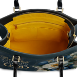 This handbag is spacious yet stylish, fitting up to 3 large print Bibles, a 13" laptop, books, wallet, and more.