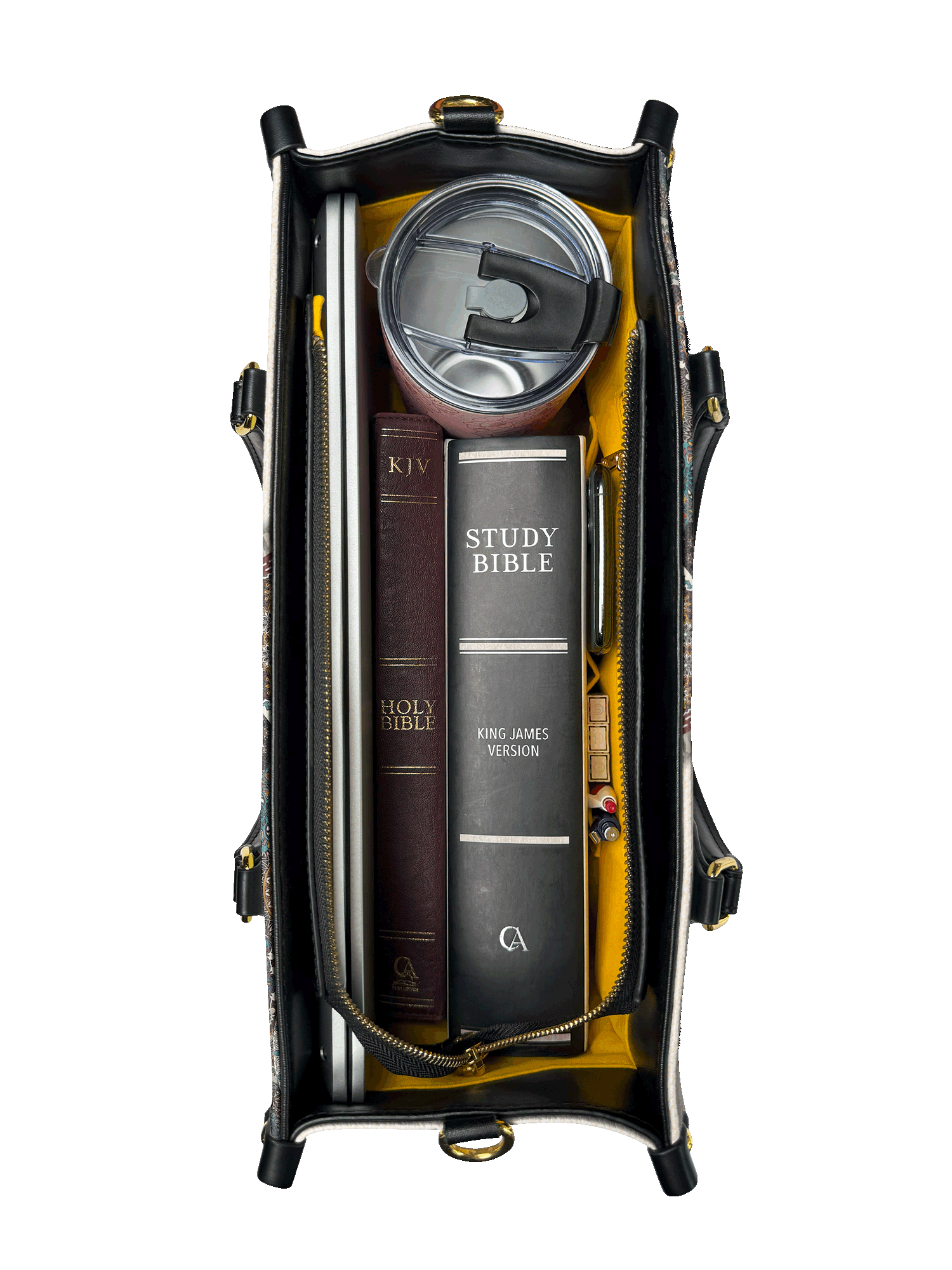 With a secure zipper closure and comfortable handles, it’s perfect for church, Bible study, work, or everyday use, keeping essentials organized and protected.