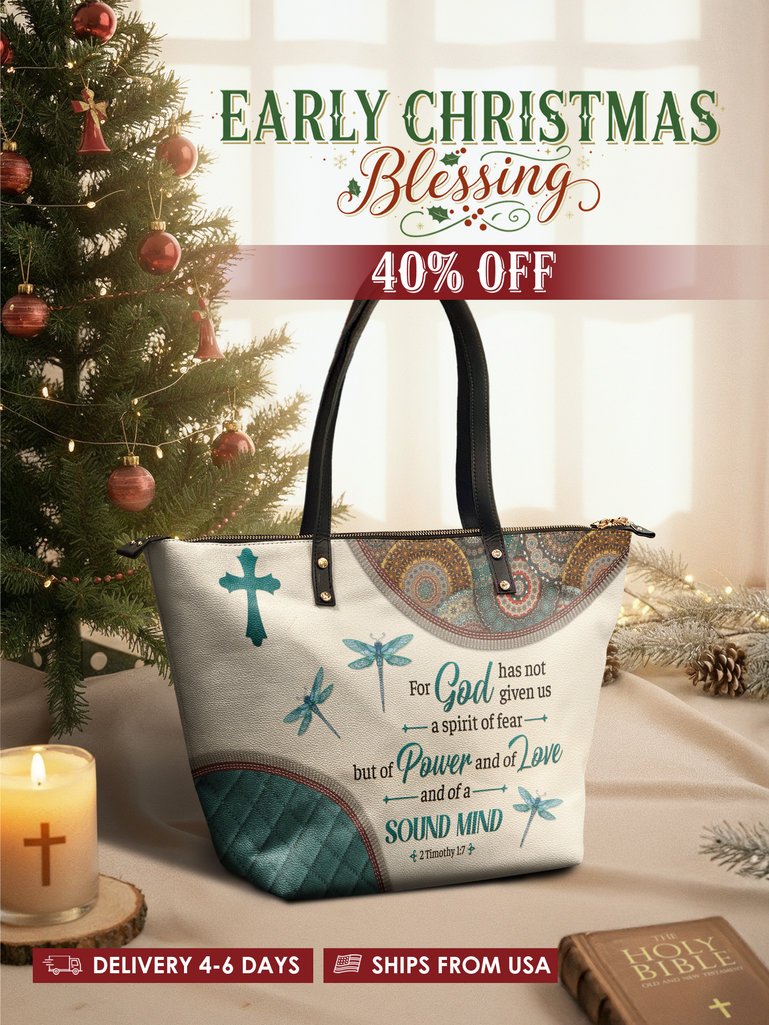 "Poise" - 2 Timothy 1:7 Leather Tote Bag