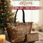 This handbag is spacious yet stylish, fitting up to 3 large print Bibles, a 13" laptop, books, wallet, and more.
