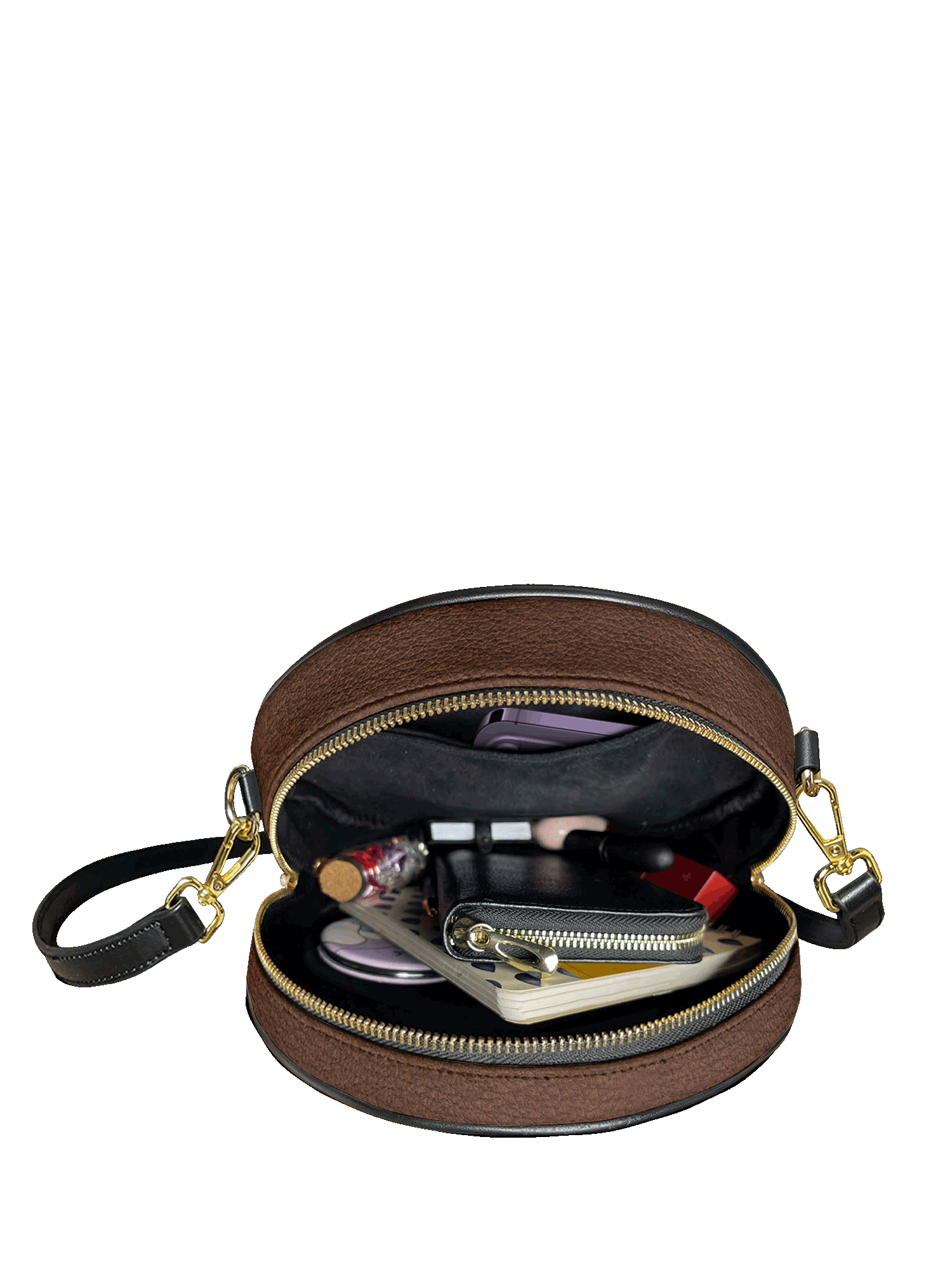 This circle crossbody bag is crafted from premium vegan leather or luxurious Italian leather for a soft, durable finish that lasts.