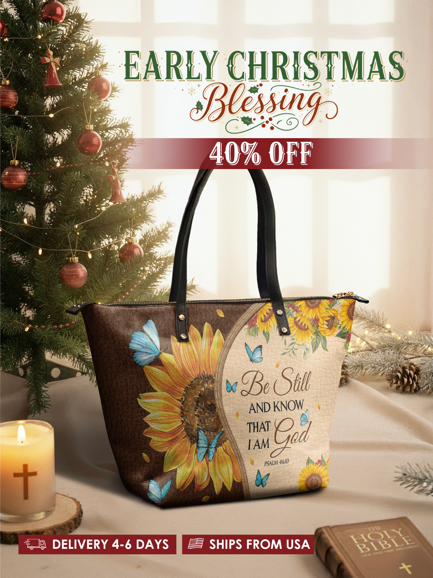 "Presence" - Psalm 46:10 Leather Tote Bag