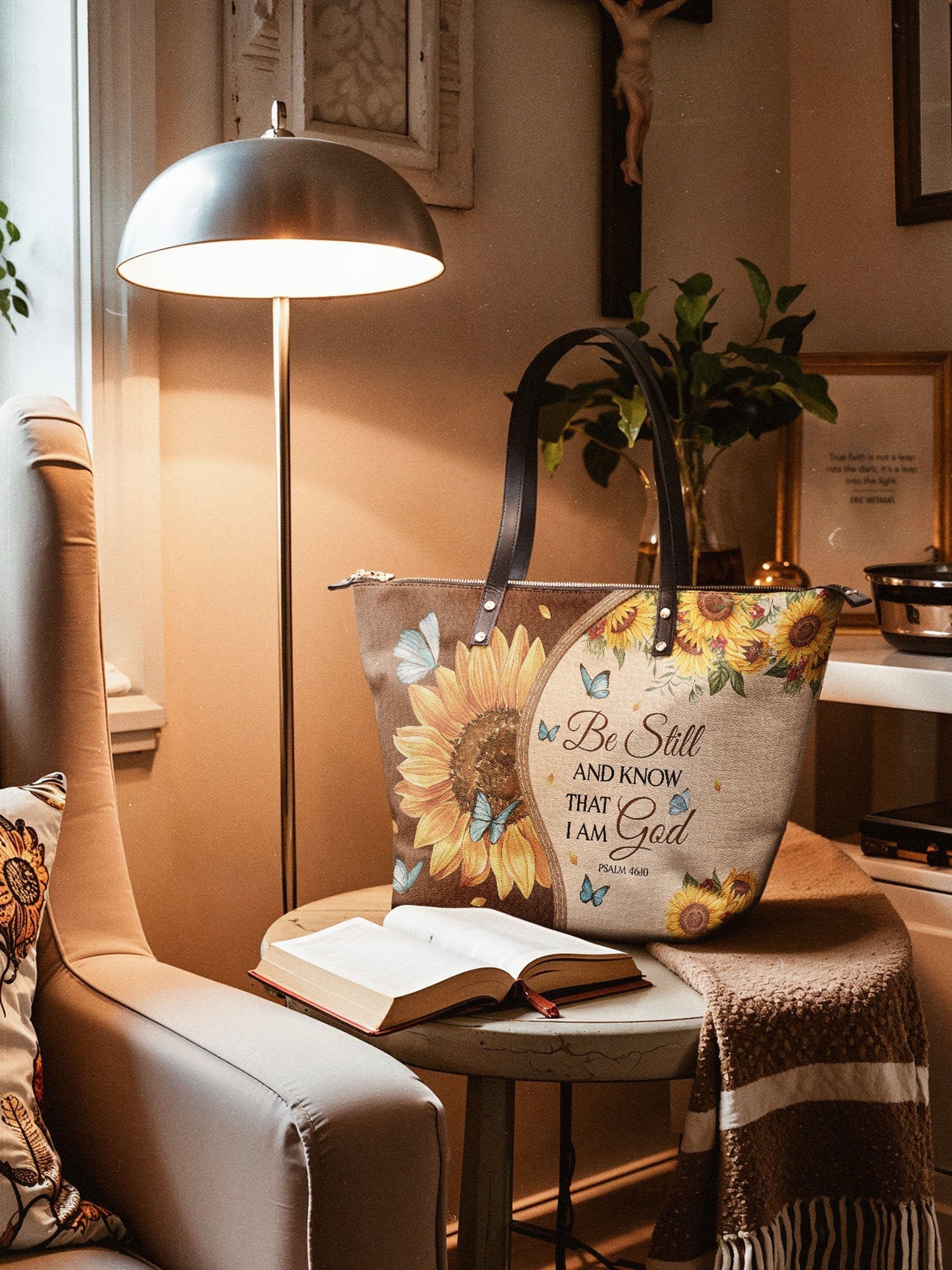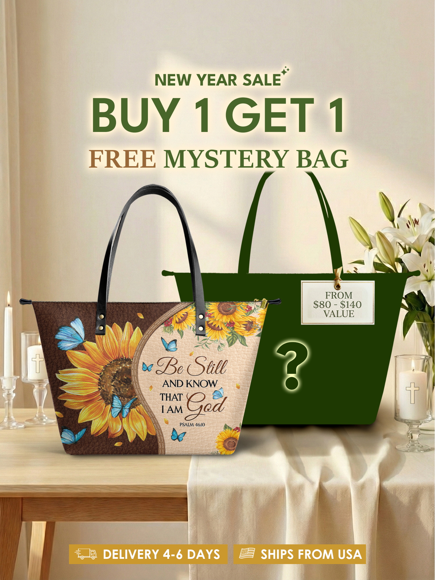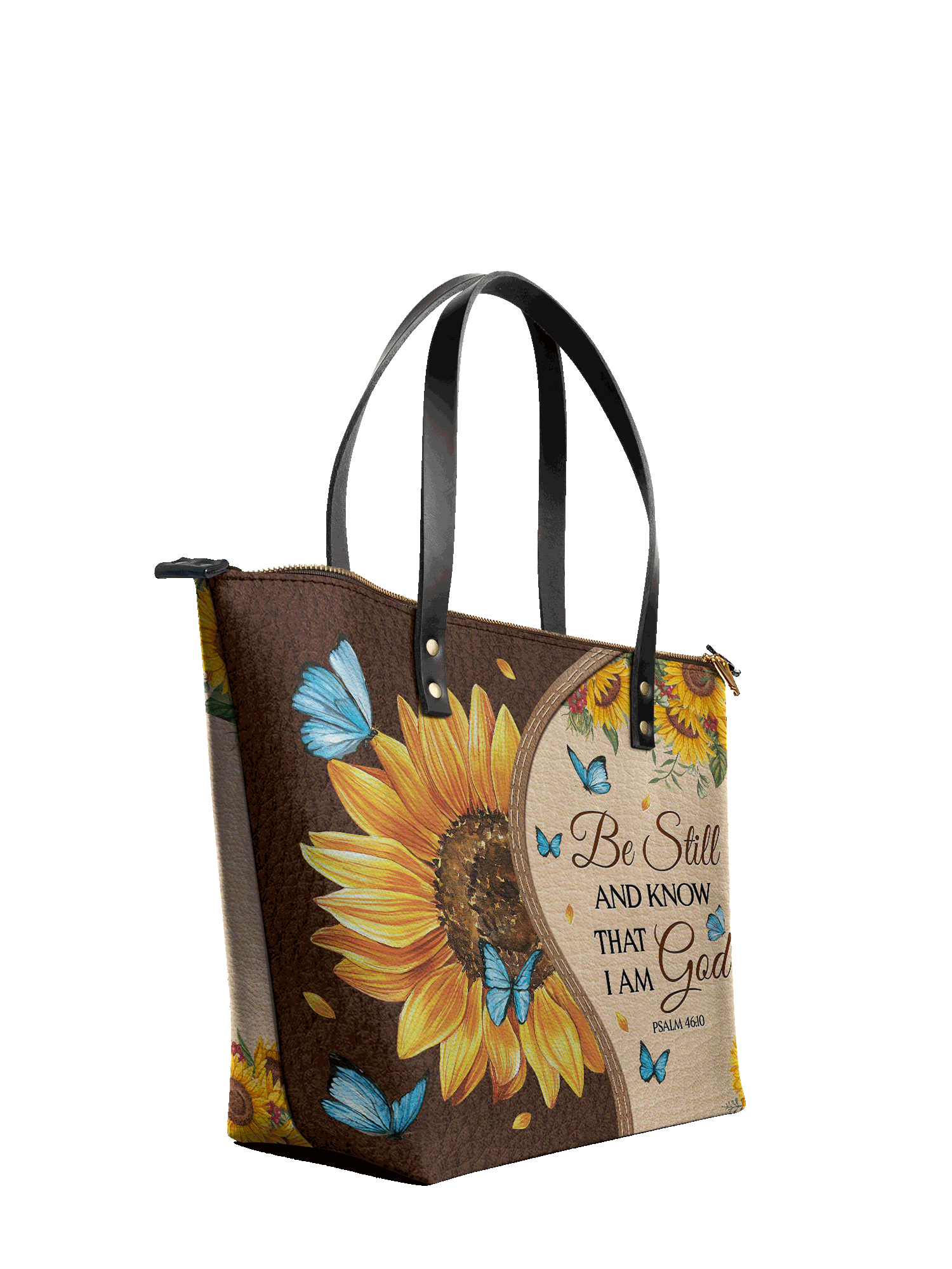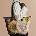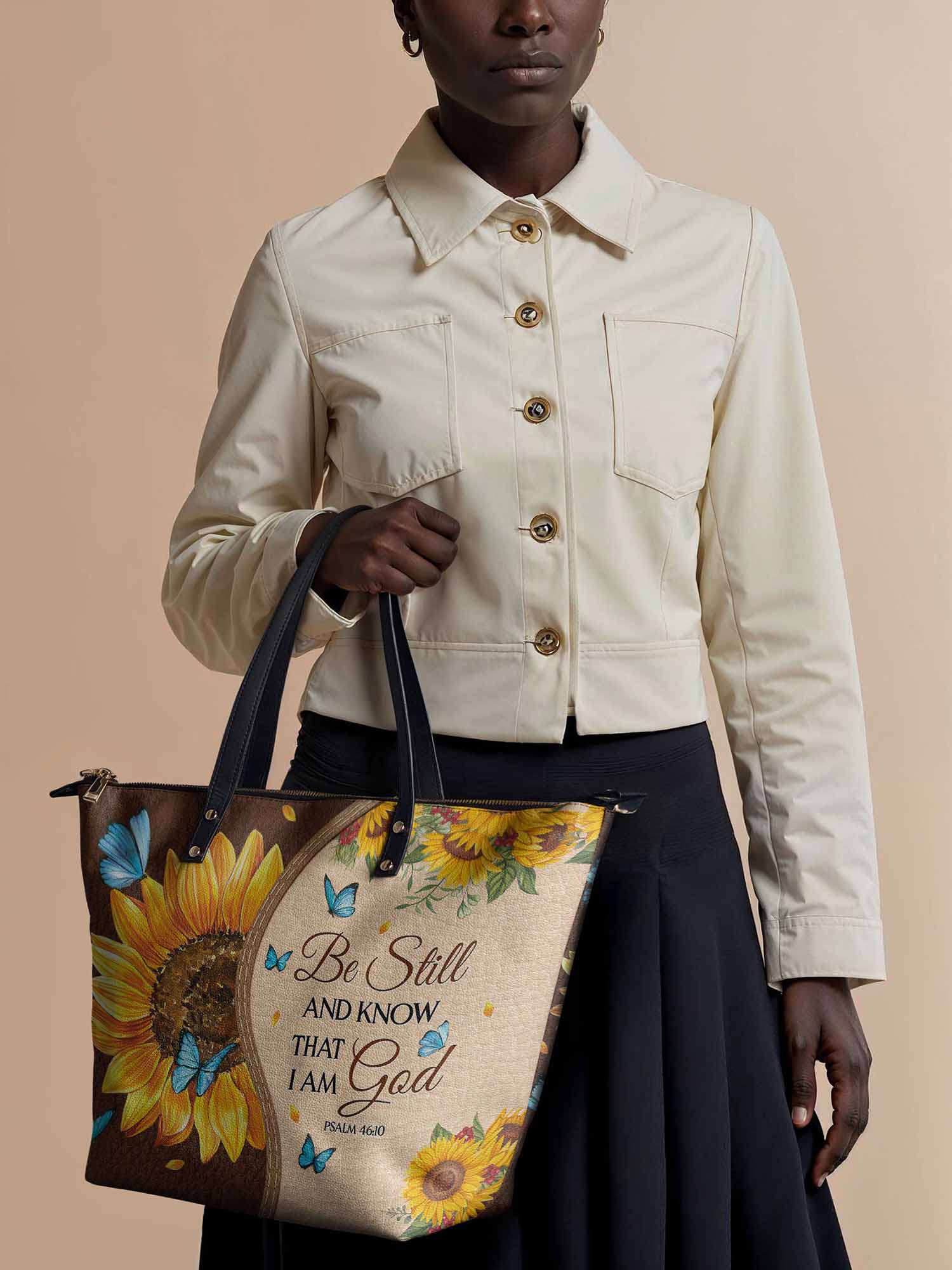 "Presence" - Psalm 46:10 Leather Tote Bag New Deal