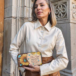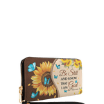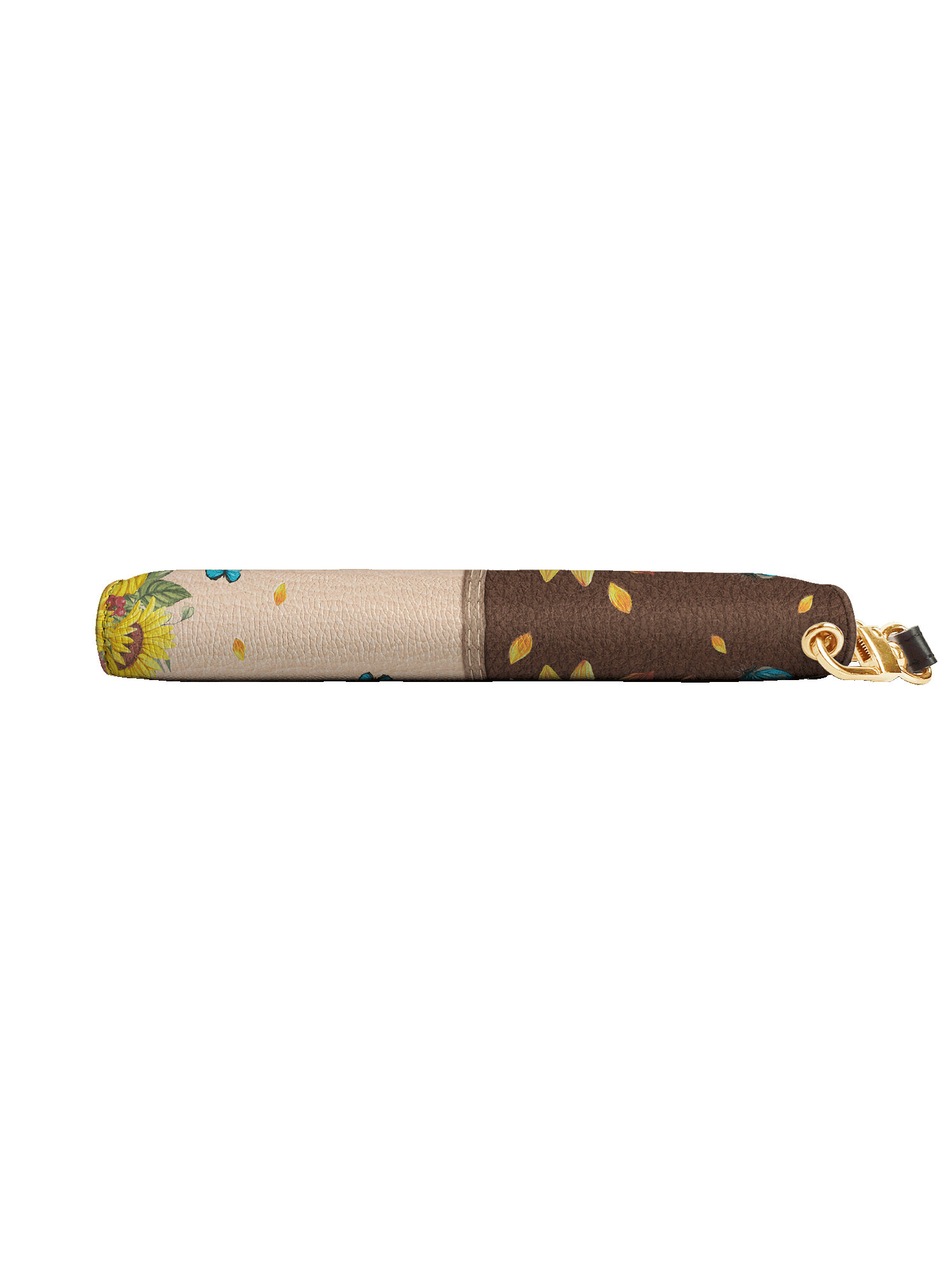 This wallet is spacious and stylish, holding beauty essentials, cash, cards, and a phone with ease.