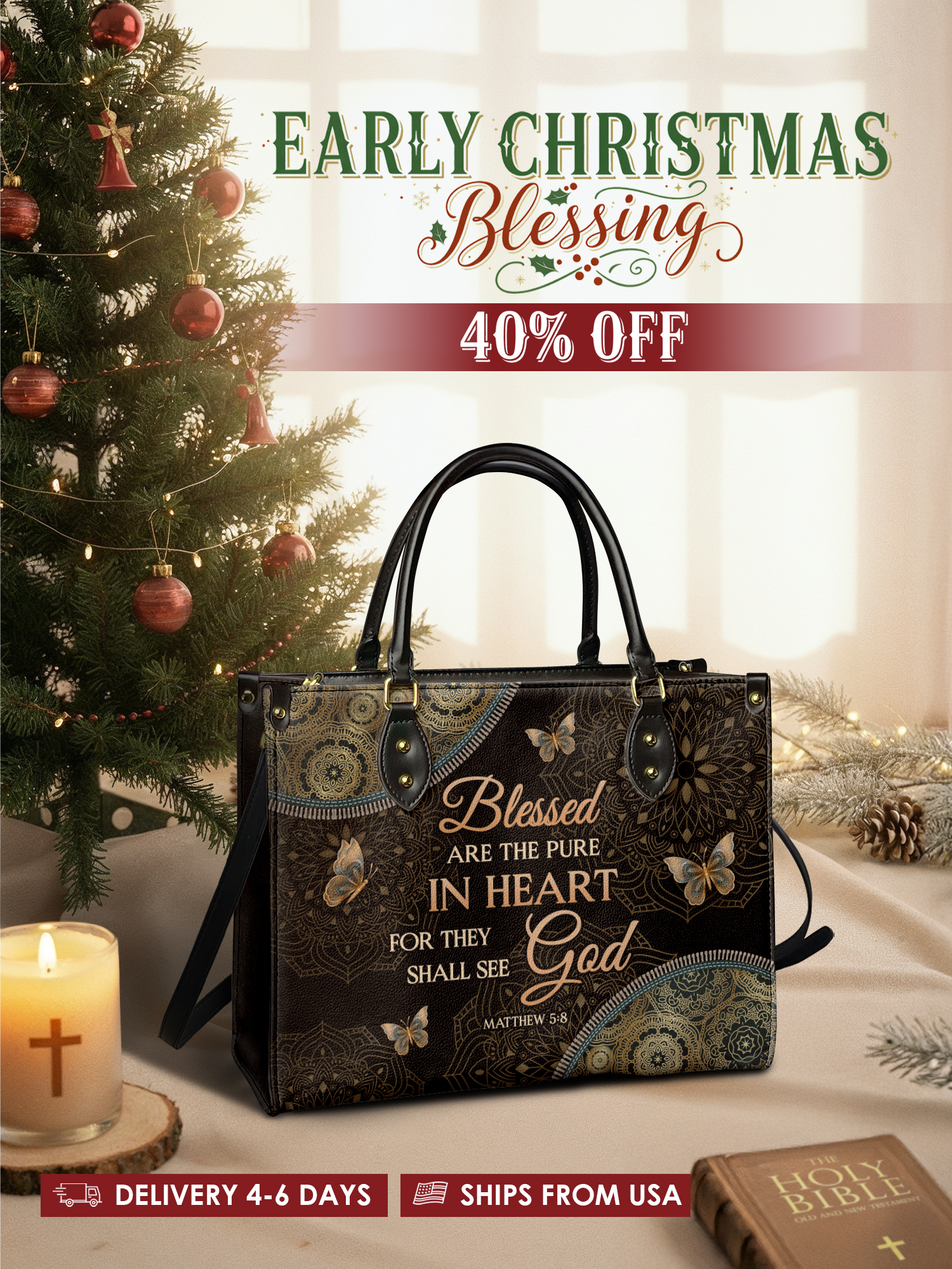 With a secure zipper closure and comfortable handles, it’s perfect for church, Bible study, work, or everyday use, keeping essentials organized and protected.