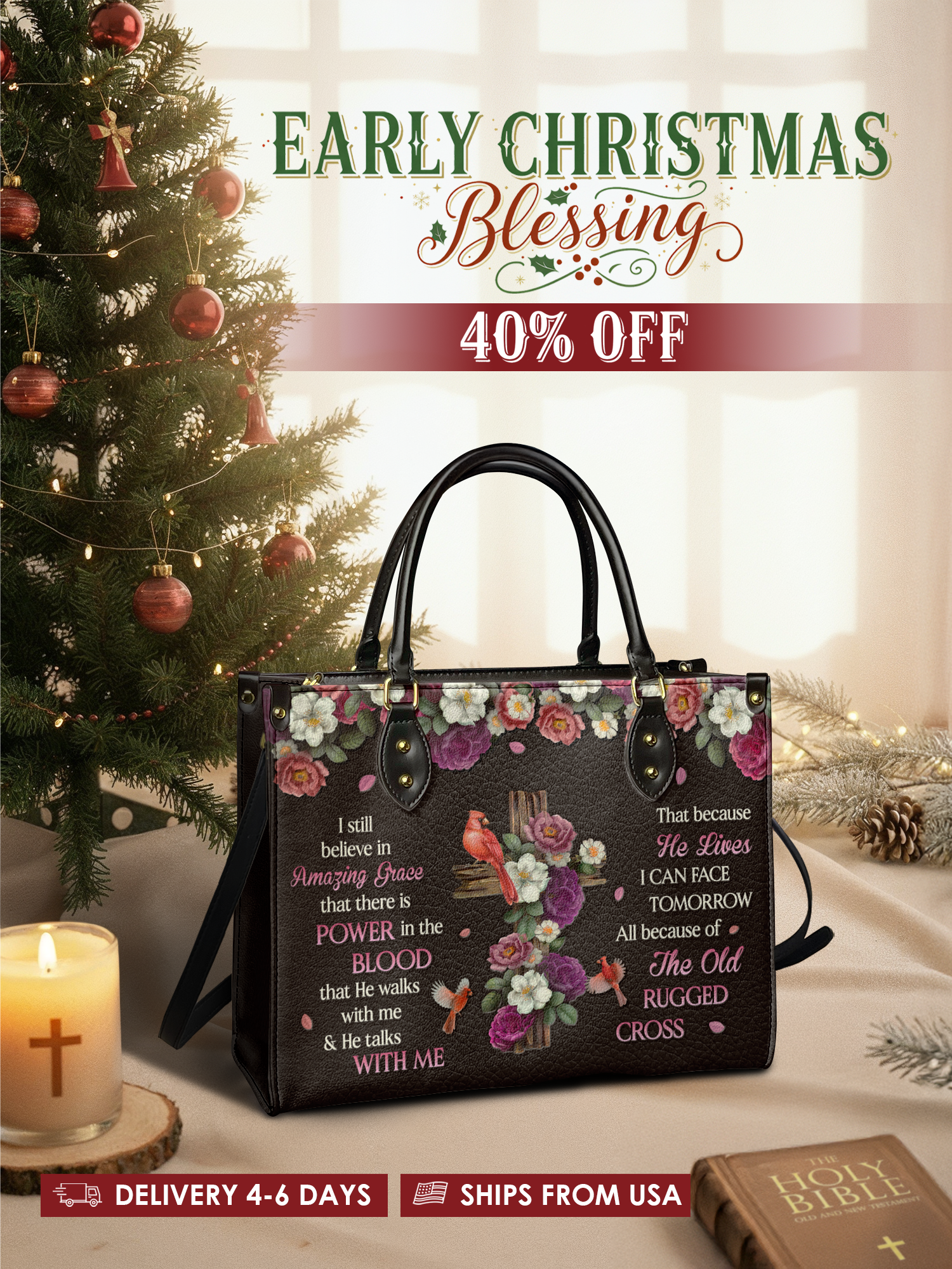 With a secure zipper closure and comfortable handles, it’s perfect for church, Bible study, work, or everyday use, keeping essentials organized and protected.