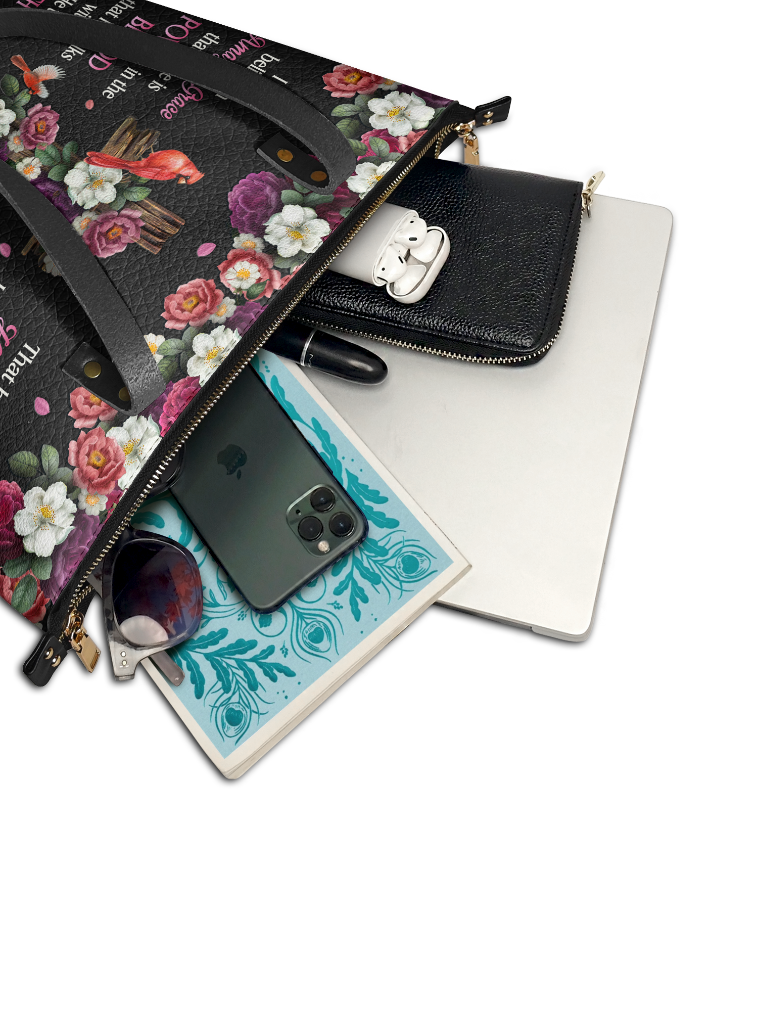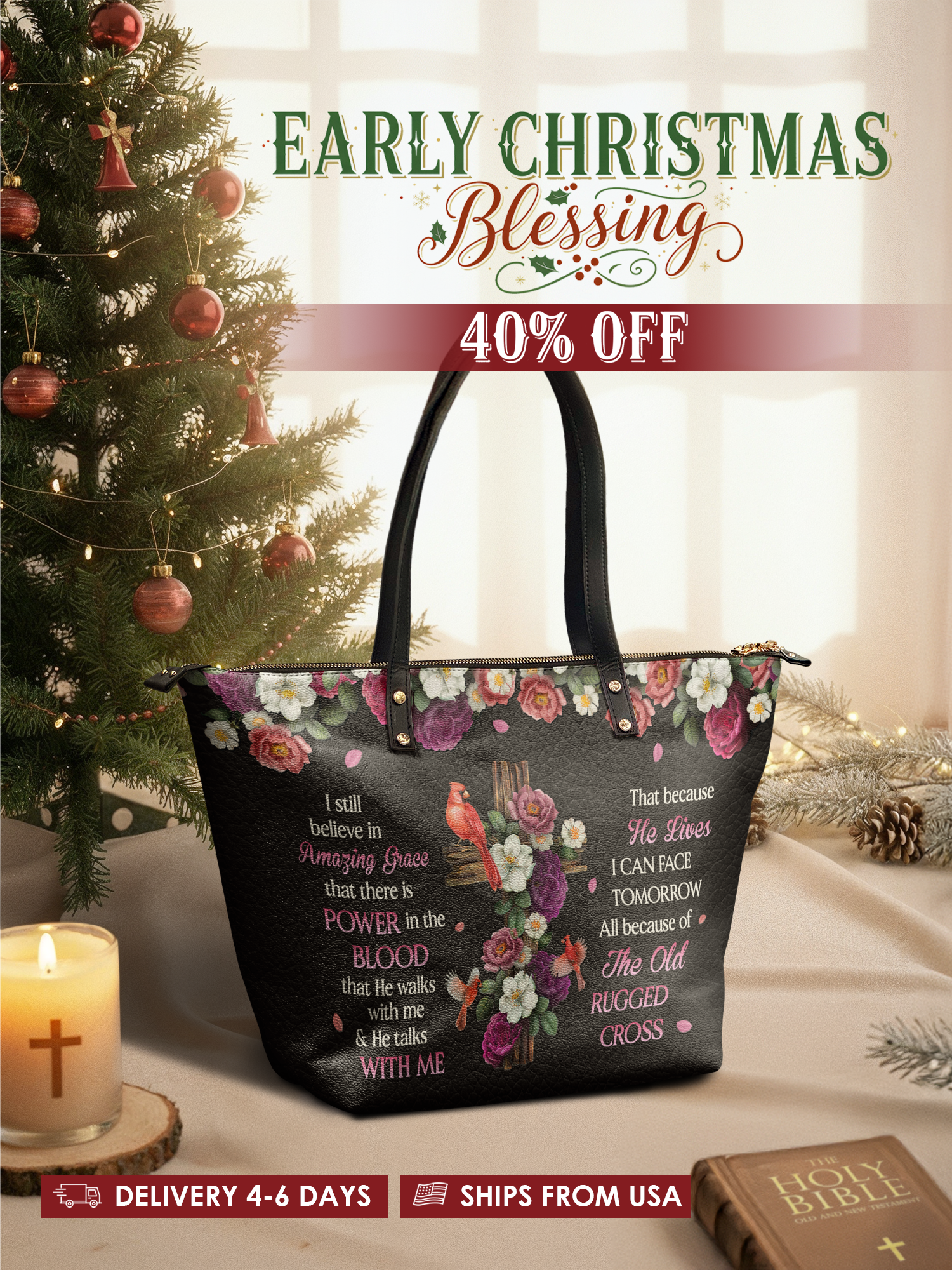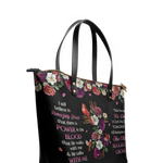 This tote bag is spacious and practical, easily fitting 2 large print Bibles, a 13" laptop, books, and daily must-haves.