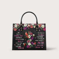 I just love my new bag! The vegan leather is very soft and pliable, which I love! I have already used my bag for Bible study and will also be using it on Sunday's for my GriefShare class. I am able to fit all my materials for both applications which gives me a comfortable & beautiful way to share my faith with others. I will love carrying a special verse on my bag that God gave me from Psalm 46 while walking a painful journey of grief. "Be still and know that I am God." He had some very special things to share with me when I got still in His presence.